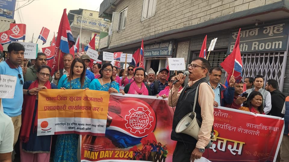 पोखराको बसपार्कमा रहेको नेपाल ट्रेड युनियन महासंघ (जिफन्ट), ट्रेड युनियन कांग्रेसको कार्यालयबाट निकालिएको सचेतनामुलक पृथ्वीचोक, सभागृहचोक सिर्जनाचोकहुँदै साइमन पार्टी प्यालेसमा पुगेर श्रमिक सभामा परिणत भएको छ ।