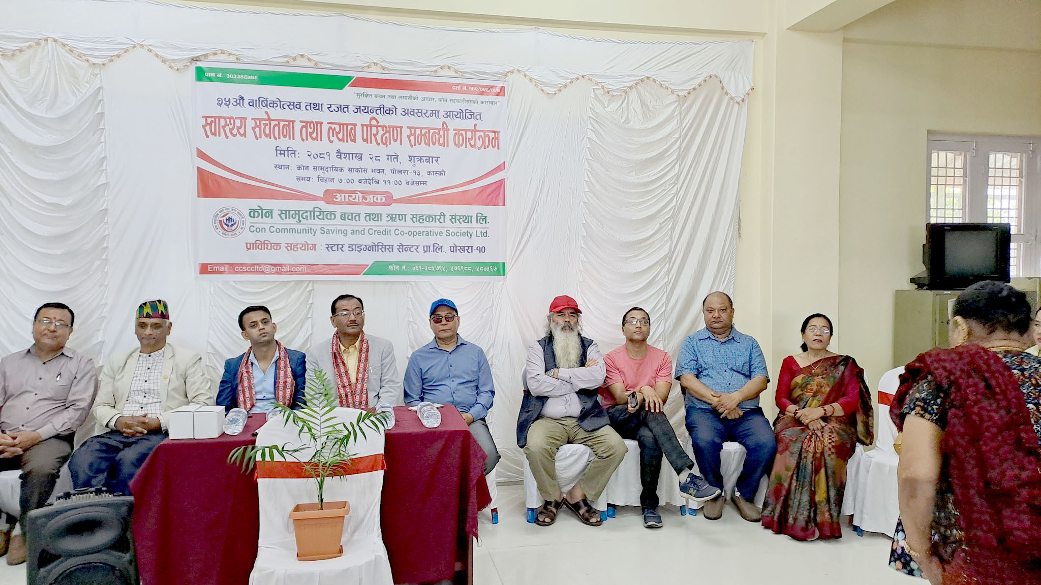 पोखरा महानगरपालिका वडा नम्बर १३ कुँडहरस्थित कोन सामुदायिक बचत तथा ऋण सहकारी संस्थाले स्वास्थ्य सचेतना तथा ल्याब परीक्षण सम्बन्धी कार्यक्रम शुक्रबार गरेको छ ।