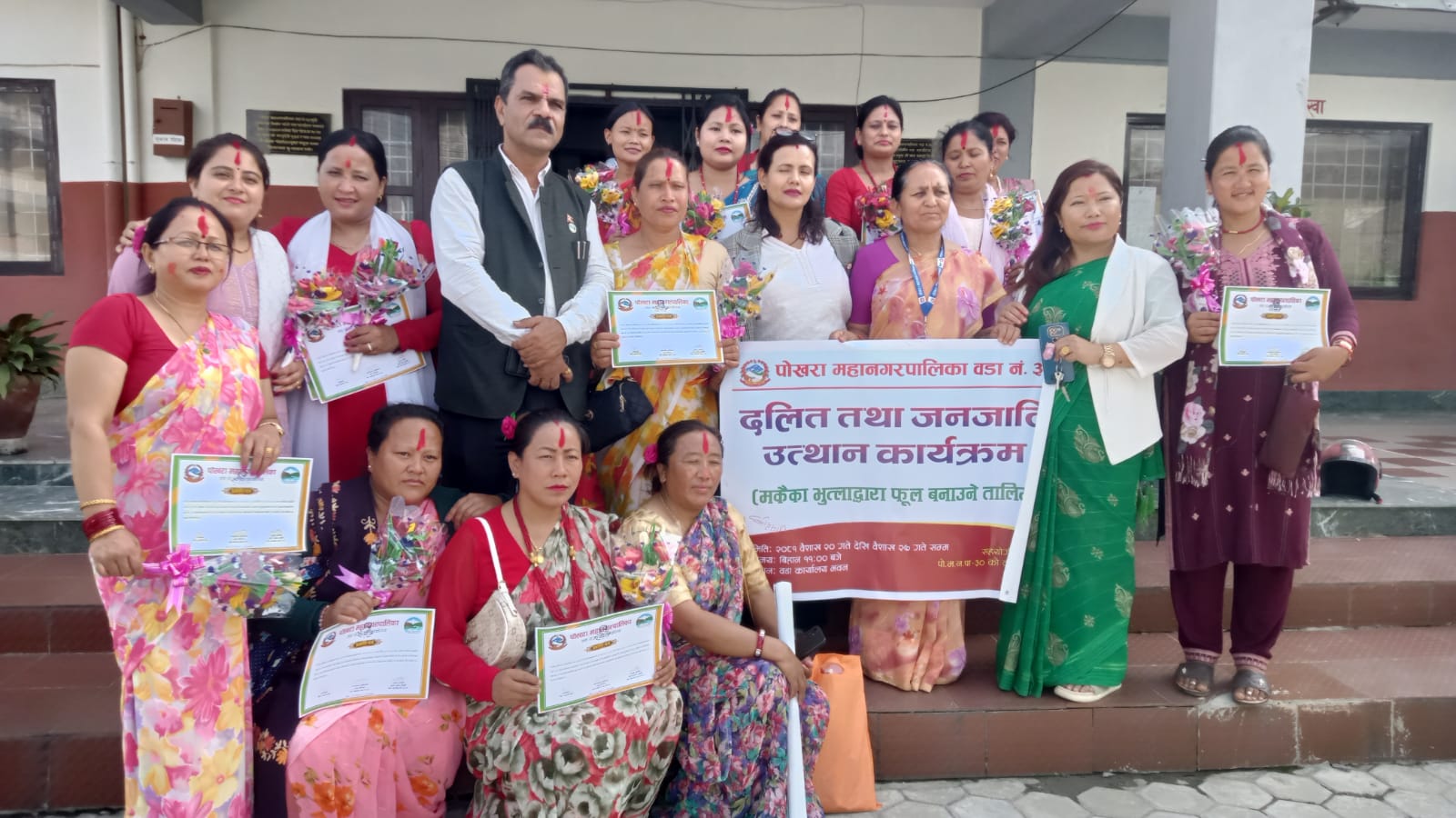 पोखरा महानगरपालिका वडा नम्बर ३० को आयोजनामा भएको मकैको भुत्लाबाट फूल बनाउने तालिम सकिएको छ ।