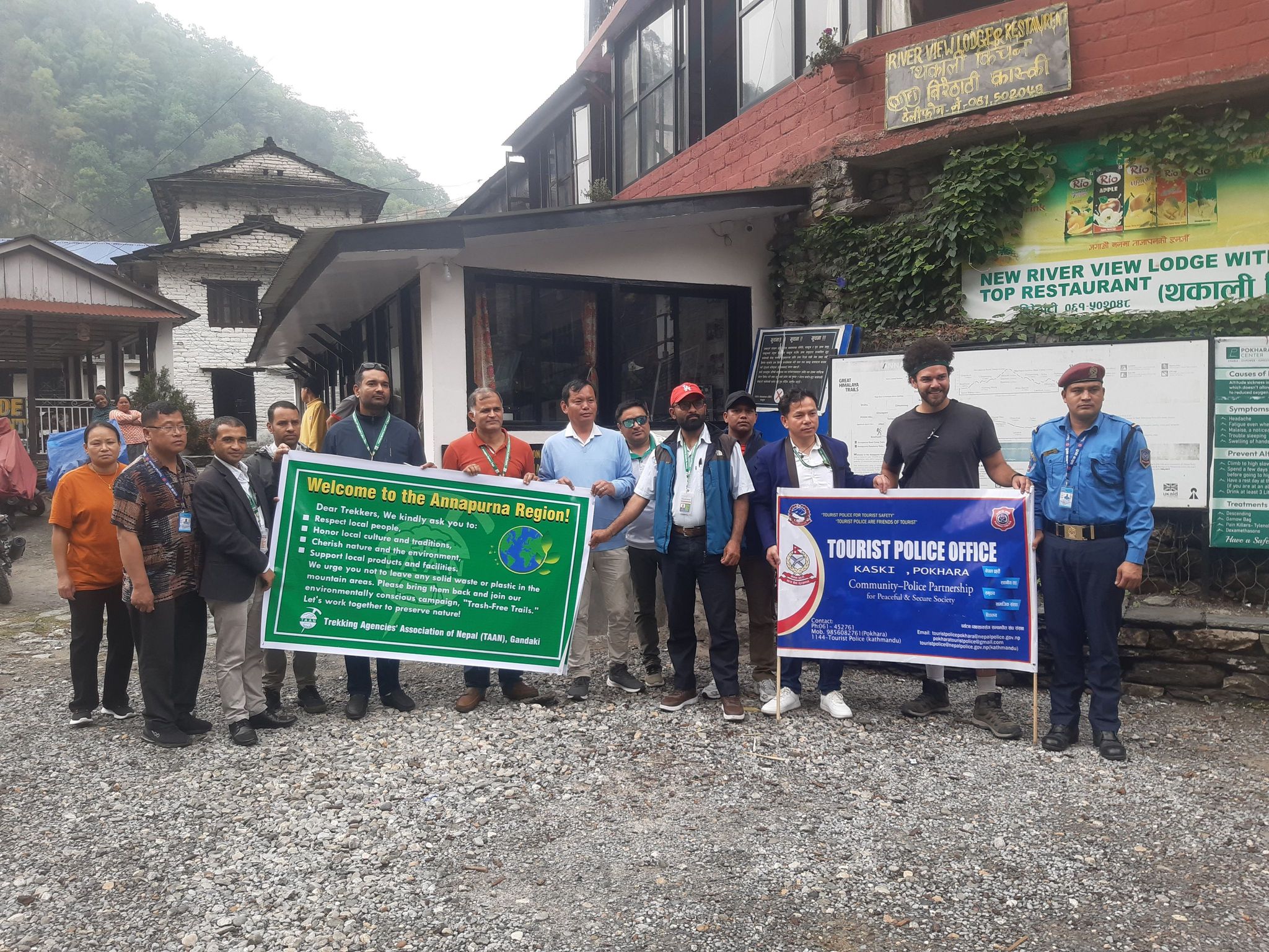 ‘सुरक्षित र मर्यादित पदयात्राका लागि सचेतना तथा अनुगमन’ कार्यक्रमका साथ टान गण्डकीका अध्यक्ष धर्मराज पन्थी नेतृत्वमा पर्यटन व्यवसायी, पर्यटन प्रहरी, अन्नपूर्ण संरक्ष्ण क्षेत्र आयोजना (एक्याप) पोखराका प्रतिनिधि, पर्यटनसम्बद्ध मजदुर सङ्गठनका प्रतिनिधि एवं सञ्चारकर्मीसहितको टोलीले वीरेठाँटीमा स्थलगत अनुुगमनसँगै पदयात्रा क्षेत्रका समस्या, टिम्स कार्ड चेकपोष्ट नहुँदा पर्ने कठिनाइ, सुरक्षित पदयात्रालगायत विषयमा जानकारी लिएको हो ।