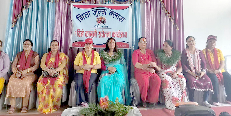 गीता जुम्बा क्लासको आयोजनामा कानुनी सचेतना कार्यक्रम भएको छ । बुधबार आयोजित कार्यक्रम उद्घाटन गर्दै रेडियो सफलताका प्रबन्ध निर्देशक दुर्गा अधिकारीले शासनमा महिला, आसनमा महिला र भाषणमा महिला भन्ने नारालाई सार्थकता तुल्याउन आआफ्नो स्थानबाट सबैजना लाग्नुपर्नेमा जोड दिइन् ।