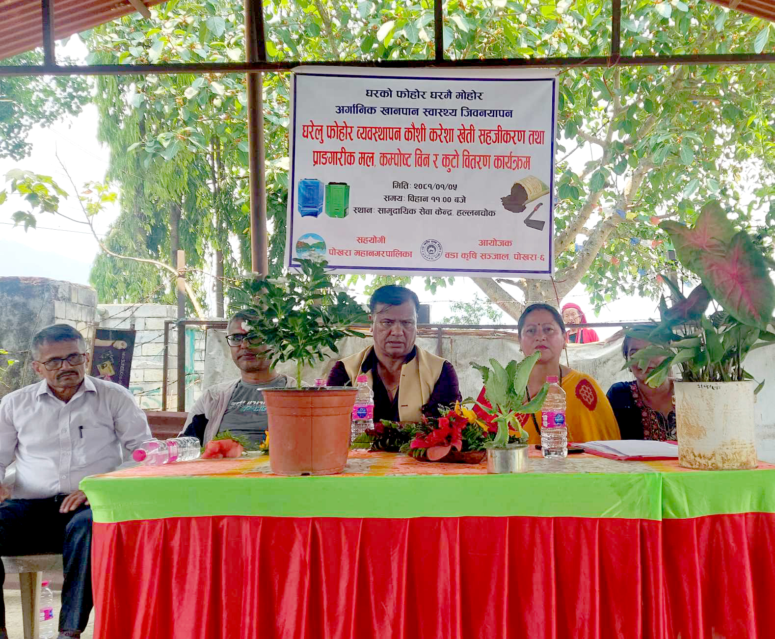 कार्यक्रममा पोखरा महानगर पालिका वडा नम्बर ६ का अध्यक्ष विष्णुबहादुर भट्टराईले घरबाट निस्कने कुहिने फोहोरलाई कम्पोस्ट मलको रुपमा कौसी र करेसा बारीमा प्रयोग गरी तरकारी उत्पादन गर्न प्रोत्साहन गरे ।
