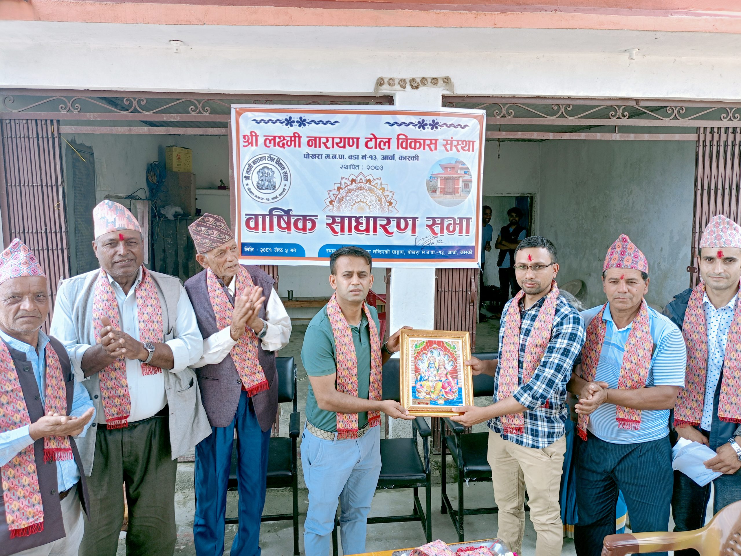 लक्ष्मीनारायण टोल विकाश संस्था, पोखरा १३ आर्बाको साधारण सभा शनिबार सम्पन्न भएको छ । त्यस अवसरमा पोखरा महानगरपालिका वडा नम्बर १३ का वडाध्यक्ष किरण बरालले आगामी आर्थिक वर्षमा आर्वाका करिब ९० प्रतिशत सडकहरु कालोपत्रे गर्ने जानकारी दिए । उनले आफ्नो कार्यकालभित्र आर्बाको मुहार फेरिने गरी विकासको योजना अगाडि सारेको सुनाए ।