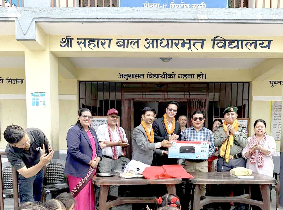 पोखरा–९, बसपार्कमा रहेको सहारा बाल आधारभूत विद्यालयमा बालबालिकाको क्षेत्रमा लामो समयदेखि कार्यरत संस्था चिल्ड्रेन नेपालले १ थान रंगीन प्रिन्टर हस्तान्तरण गरेको छ ।