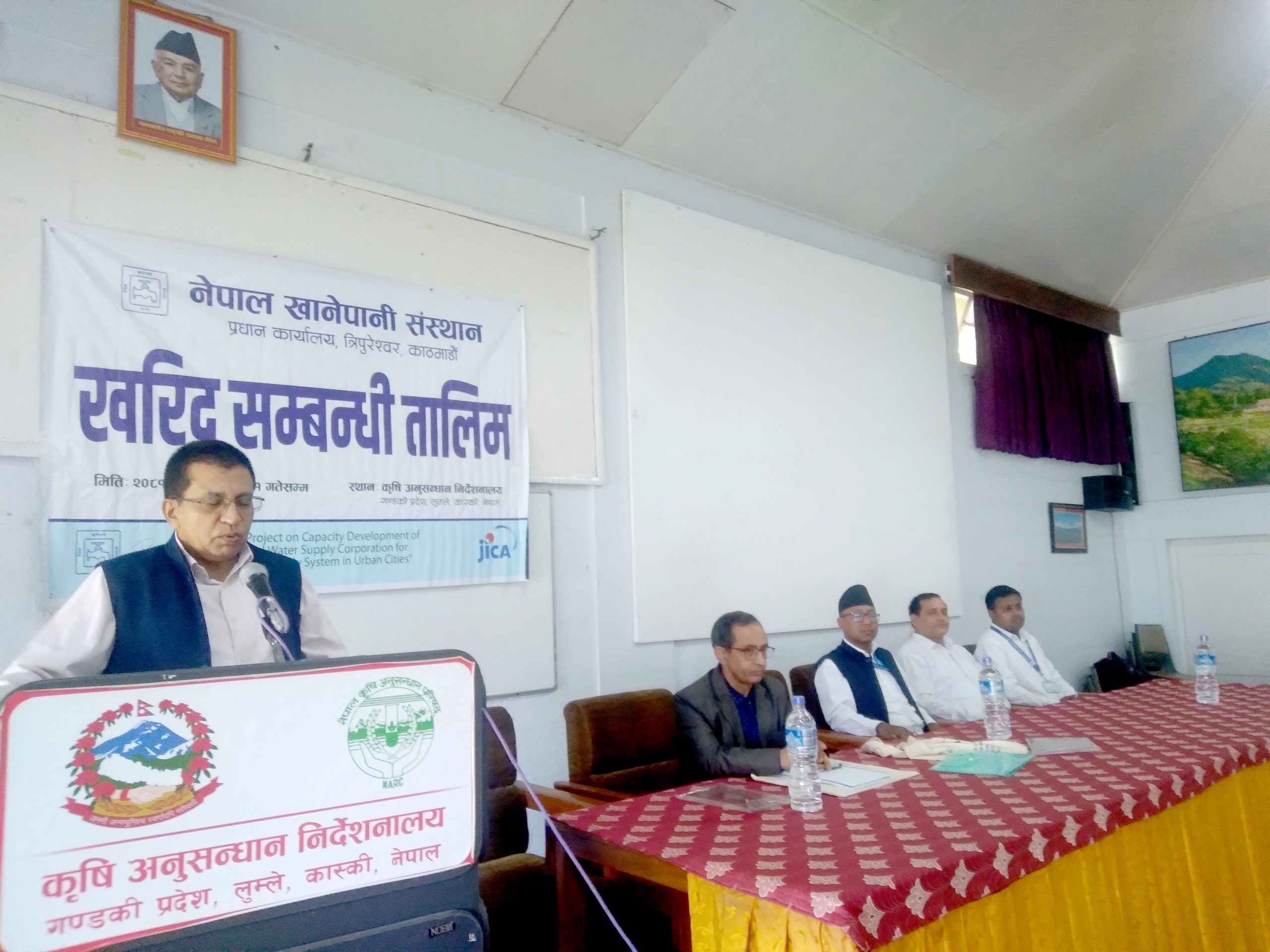 तालिमलाई सहजीकरण गर्दै पोखरा शाखाका वरिष्ठ सहायक विष्णुप्रसाद रेग्मीले सहभागीलाई स्वागत तथा कार्यक्रम सञ्चालन गरेका थिए । दोस्रो दिनको तालिम समापन गर्दै तालिम शाखा प्रमुख इन्जिनियर निरण महर्जनले विधि र प्रक्रियालाई आत्मसाथ गर्दै भविष्यमा हुन सक्ने कानुनी झमेलाबाट बच्न सार्वजनिक खरिद ऐन र नियमावली निरन्तर अध्ययन गर्न आग्रह गरेका थिए ।