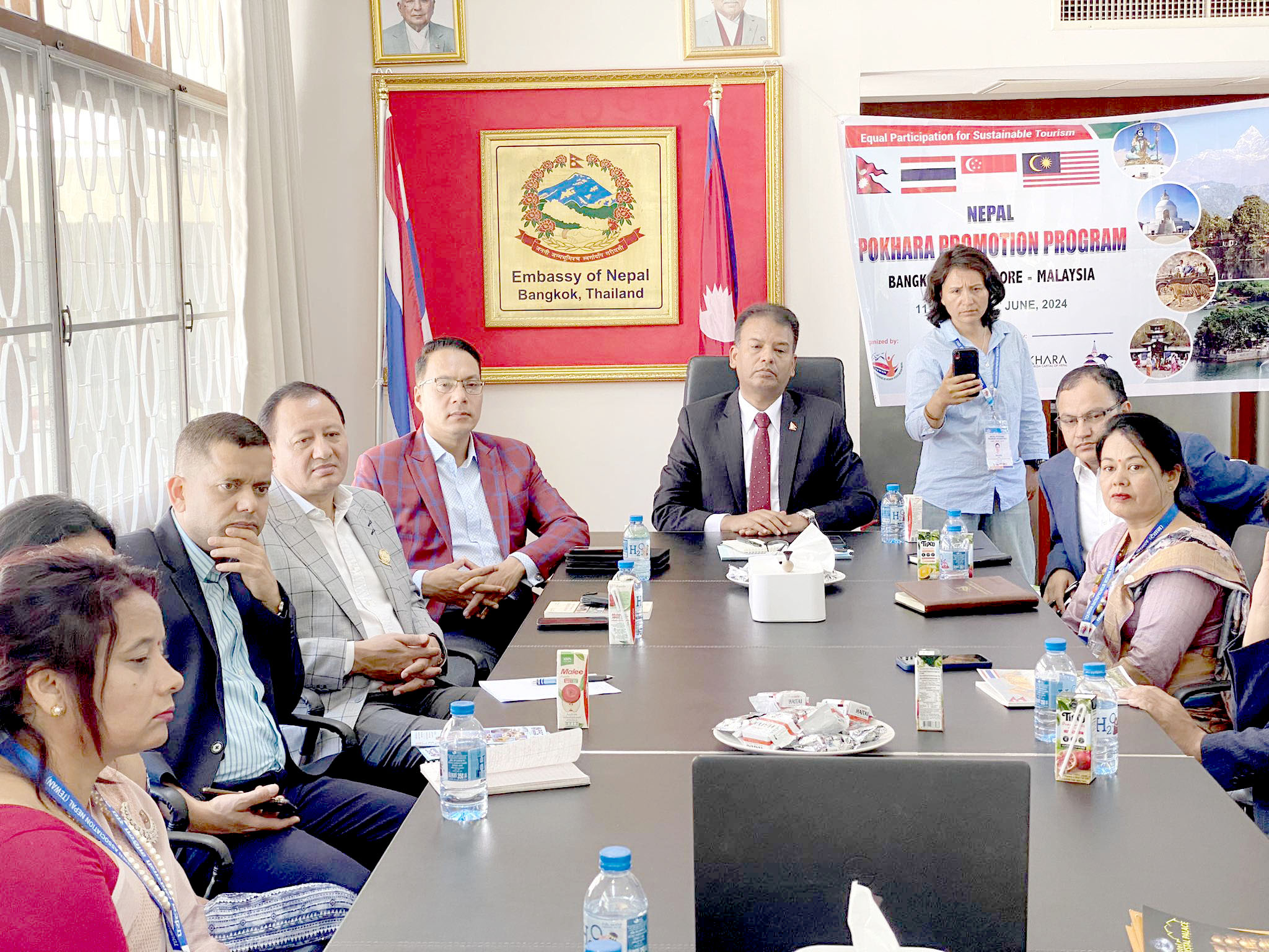 पोखराको पर्यटन प्रबद्र्धनका लागि विदेश भ्रमणमा रहेको पर्यटन व्यवसायी महिला संघ नेपाल (टेवान) को टोलीले थाइल्यान्डस्थित नेपालको दूतावासमा अन्तक्र्रिया गरेको छ । पोखराको पर्यटन, पर्यटकीय गन्तव्य, पर्यटन व्यवसायी, स्थानीय सरकार लगायतले निर्वाह गर्नुपर्ने भूमिकाबारे अन्तरक्रिया भएको छ ।