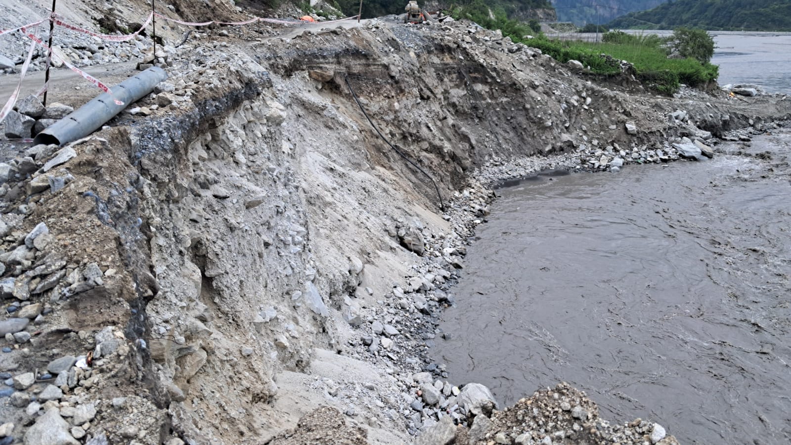 नदीको बहाव उच्च भएका कारण फाउन्डेसन निर्माणको काम अहिले रोकिएको छ । तर, पुलको संरचना निर्माणको काम रोकिएपनि निर्माण कम्पनीले मुख्य राजमार्ग सडकलाई पूर्ववत अवस्थामा राखेर छोड्नुपर्नेमा यथास्थितीमा राखेर छोड्दा त्यहाँको मुख्य सडक धरापमा पर्न गएको हो । त्यहाँ सडक जोगाउन निर्माण कम्पनीले कुनै कार्य गरेको छैन । यसैका कारण बेनी—जोमसोम सडक अन्तर्गत त्यहाँ सडक सुरक्षा जोखिम बढेको हो ।