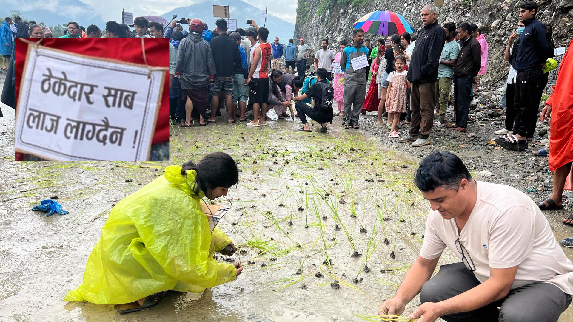 शनिबार असार १५ को दिन पारी स्थानीयले हिलाम्मे सडकमै धान रोपेर विरोध गरेका हुन् । उनीहरुले यसलाई आफूहरुको संकेतिक विरोधमात्र भएको बताएका छन् । यदि निमाण कम्पनी र राज्यले आफूहरुलाई खेलाँची सोचे चरणबद्ध आन्दोलन गर्ने तयारी गरेको त्रि–शक्ति समाज सेवा क्लबका सहसचिव प्रविन सुवेदीले बताए । ‘सिम्पानी जाऔं, धान रोपौं अनि संगै, दही चिउरा खाऔं’ भन्ने नारासहित सांकेतिक विरोध गरिएको उनले बताए ।