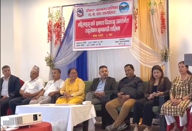 पोखरा महानगरपालिका वडा नंं २६ का महिला तथा आमा समूहमा आवद्ध महिलाका लागि क्षमता विकाससम्बन्धी ३ दिने तालिम दिएको छ ।