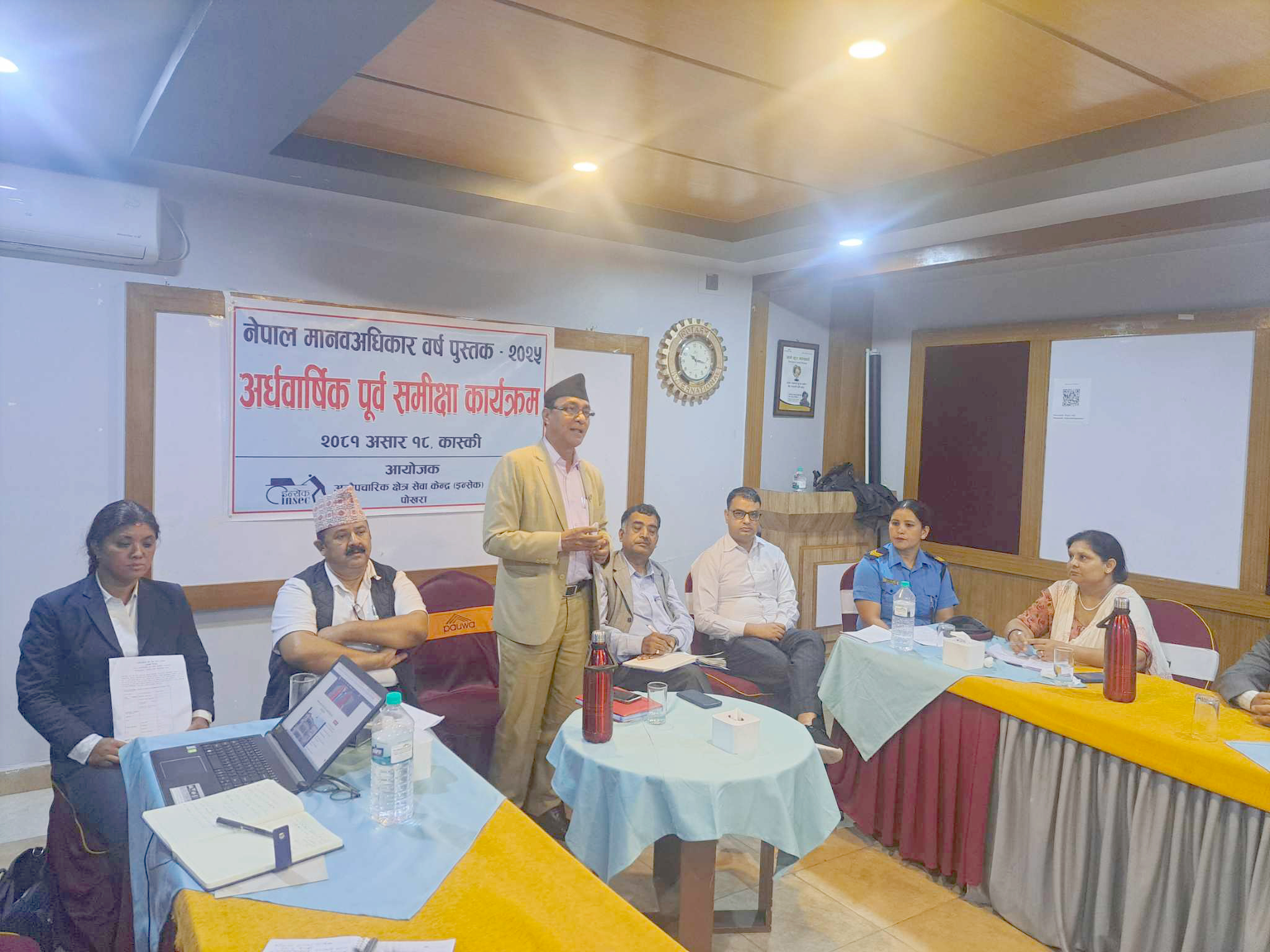 नेपाल मानव अधिकार वर्ष पुस्तक २०२५ का लागि कास्की जिल्लामा संकलित घटनाको अर्धवार्षिक समीक्षा मंगलबार भएको छ । अनौपचारिक क्षेत्र सेवा केन्द्र (इन्सेक) गण्डकी प्रदेश कार्यालयको आयोजनामा सन् २०२४ जनवरीदेखि जुनसम्मका ६ महिनाका घटनाको विषयमा सरोकारवालासँग समीक्षा गरिएको हो ।