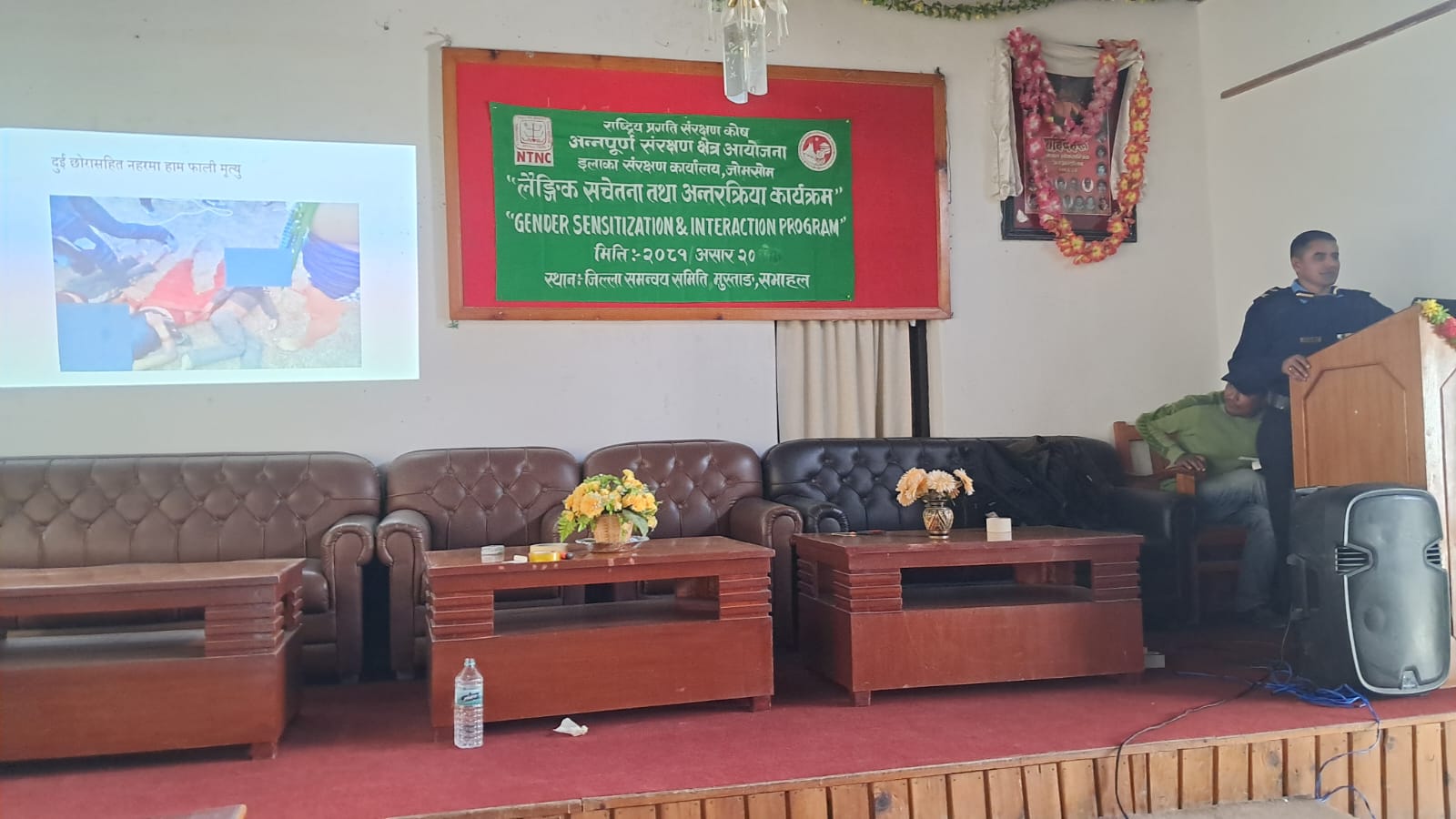 एक्यापद्वारा आयोजित उक्त कार्यक्रममा मुस्ताङका प्रमुख जिल्ला अधिकारी जनकराज पन्त ,मुस्ताङका प्रहरी प्रमुख डिएसपी भोजराज पाण्डेय र एक्याप मुस्ताङका कार्यालय प्रमुख प्रमोदराज रेग्मी लगायतले लैङ्गि सचेतना तथा अन्तरक्रिया कार्यक्रममा आ—आफ्नो प्रस्तुतीरकण सकेपछि थासाङ गाउँपालिकाकी महिला बालबालिका शाखा प्रमुख गिरीले शाखाले गरेको कार्यसम्पादनका बिषयमा जानकारी दिदै थासाङ गाउँपालिकामा जुवातास मौलाउँदै जान थालेको प्रति चिन्ता व्यक्त गरिन् । उनले गाउँपालिकाको कुन वडामा जुवातास मौलाउँदै गईरहेको छ भन्ने बिषय स्पष्ट खुलाईनन् ।
