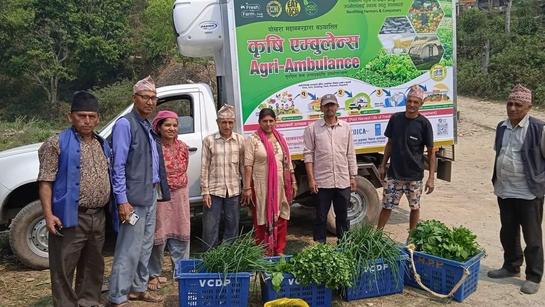फलफूल तथा तरकारी मूल्य शृङ्खला विकास आयोजना र पोखरा महानगरपालिकाको सहकार्यमा रु ३६ लाख लागतमा खरिद गरिएको कृषि एम्बुलेन्सले गत वर्ष वैशाख ५ गतेदेखि सेवा सुरुआत गरेको महानगरपालिकाका कृषि महाशाखा प्रमुख मनोहर कडरियाले जानकारी दिए ।