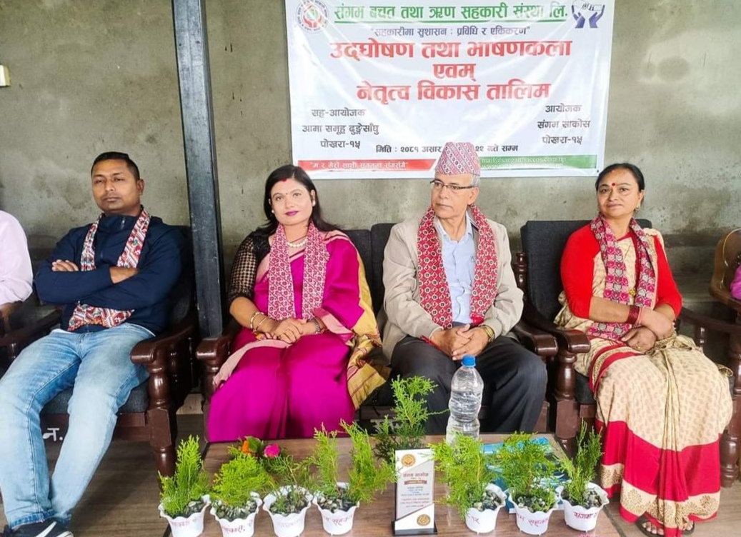 संगम बचत तथा ऋण सहकारी संस्थाले पोखरा १५ को आमा समूह ढुंगेसाँघुसँग सहकार्य गर्दै स्थानीय महिलाहरुलाई उदघोषण तथा भाषणकला एवं नेतृत्व विकास तालिम दिएको छ । तालिम ५ दिन चलेको थियो ।
