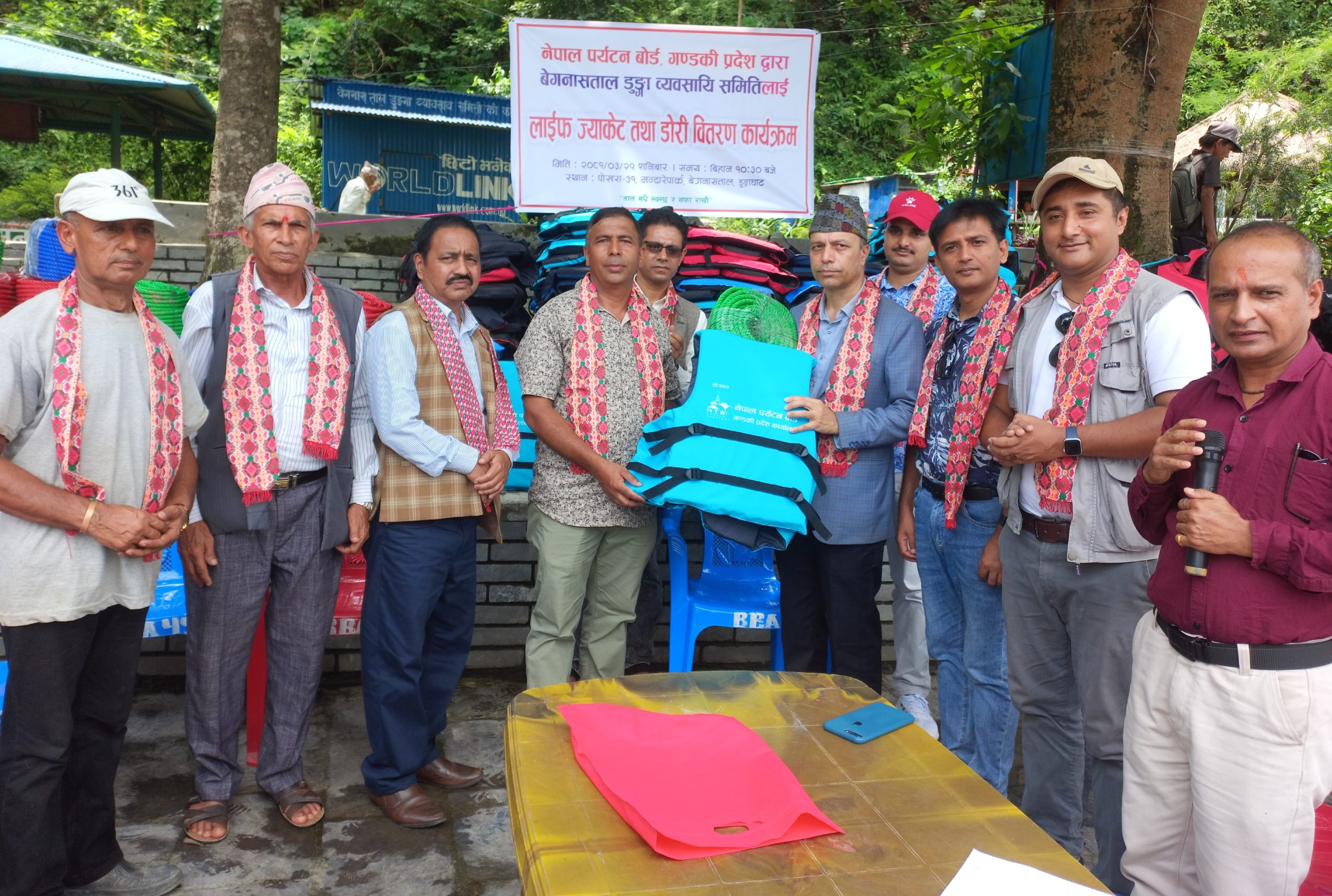 नेपाल पर्यटन बोर्ड गण्डकीले बेगनासताल डुंगा व्यवसायि समितिलाई लाईफ ज्याकेट प्रदान गरेको छ । तालमा हुन सक्ने सम्भाव्य दुर्घटनालाई न्युनिकरण गर्ने उद्देश्यले ज्याकेट सहयोग गरेको हो ।