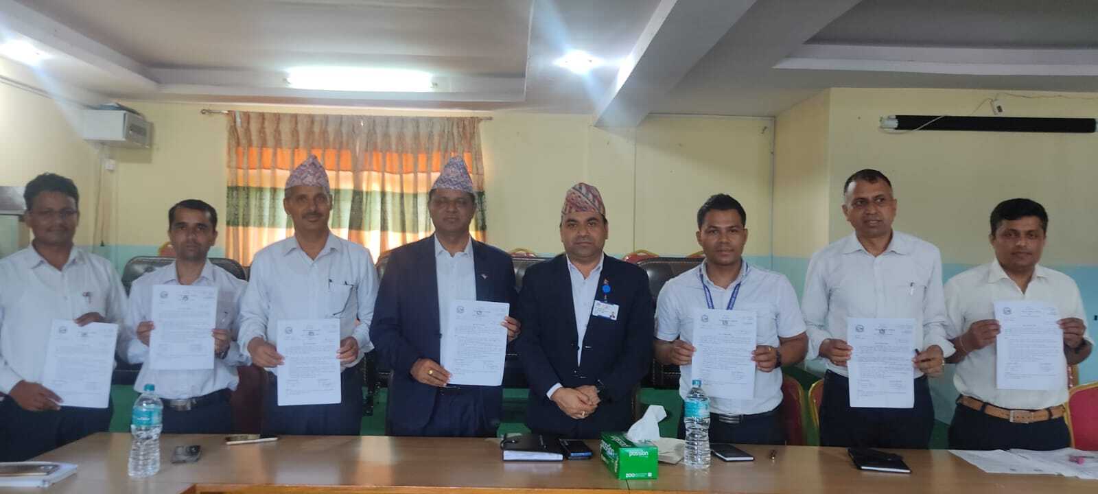 प्रशासकीय अधिकृतहरु दीपक रेग्मी, अविनाश कुँवर, भीष्मराज अर्याल, नविन सुवेदी र लेखापाल सूर्यप्रसाद गौतमबीच आब २०८१र०८२ का लागि कार्यसम्पादन सम्झौता भएको हो ।