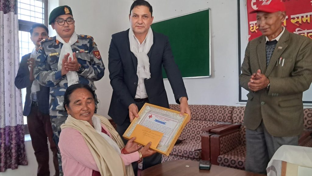 मुस्ताङका प्रमुख जिल्ला अधिकारी जकराज पन्त र रेडक्रस शाखा मुस्ताङका सभापति चन्द्रबहादुर थकालीले सम्मानित व्यक्तित्व बिष्ट र हिराचनलाई जनही नगद २० हजारसहित प्रमाणपत्र र खाँदाले सम्मान गरेका हुन् । थासाङ गाउँपालिका—२ को रेडक्रस उपशाखाको सभापति पदमा लामो समयसम्म रहेर जिम्मेवारीपूर्ण ढंगले संस्थागत विकास र मानवीय सेवाकार्यमा पू¥याएको योगदानको कदर गर्दै रेडक्रस शाखा मुस्ताङले छत्रस्मृति सामाजिक सेवा पुरस्कार २०८० अन्र्तगत सौरु निवासी मालकुमारी हिराचनलाई नगद पुरस्कृतसहित प्रमाणपत्र र खाँदाले सम्मान गरिएको हो । यस्तै, उपल्लो मुस्ताङको लोमान्थाङ गाउँपालिका—१ छोसेरमा रेडक्रस उपशाखाको सभापति पदमा लामो समयमा जिम्मेवारीपूर्वक उत्कृष्ट कार्यसम्पादन तथा विभिन्न संघसंस्था तथा जिल्लाको सामाजिक र राजनीतिक क्षेत्रमा पू¥याएको अतुलनीय योगदानको उच्चमूल्यांकन गर्दै रेडक्रस शाखा मुस्ताङले छत्रस्मृति सामाजिक सेवा पुरस्कार २०८१ अन्र्तगत छोसेरका सुवर्णकुमार बिष्टलाई नगद पुरस्कारसहित प्रमाणपत्र र खाँदा लगाएर सम्मानित गरिएको हो ।
