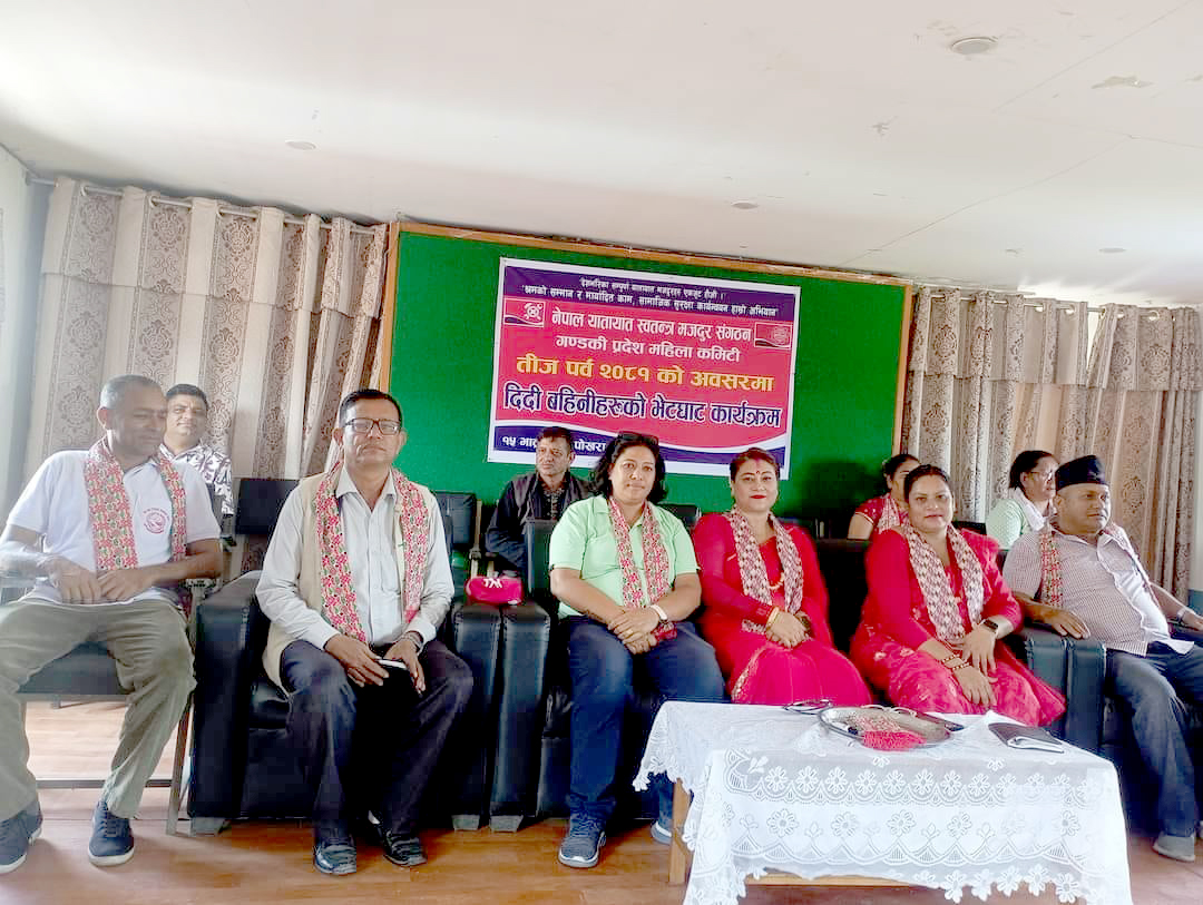 नेपाल यातायात स्वतन्त्र मजदुर संगठन गण्डकी प्रदेश महिला कमिटीले यातायात क्षेत्रमा कार्यरत महिला मजदुरलाई समेटेर हरितालिका तीज विशेष कार्यक्रम गरेको छ ।