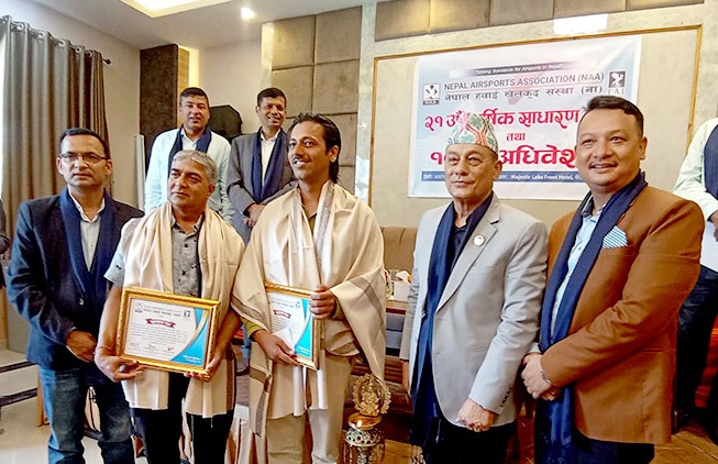 नेपाल हवाई खेलकुद संस्था (ना)ले पत्रकारद्वय अमृत सुवेदी र परशुराम शर्मालाई सम्मान गरेको छ । संस्थाको २१ औं वार्षिक साधारण सभा तथा दशौं अधिवेशनको अवसरमा उनीहरुलाई सम्मान गरिएको हो ।