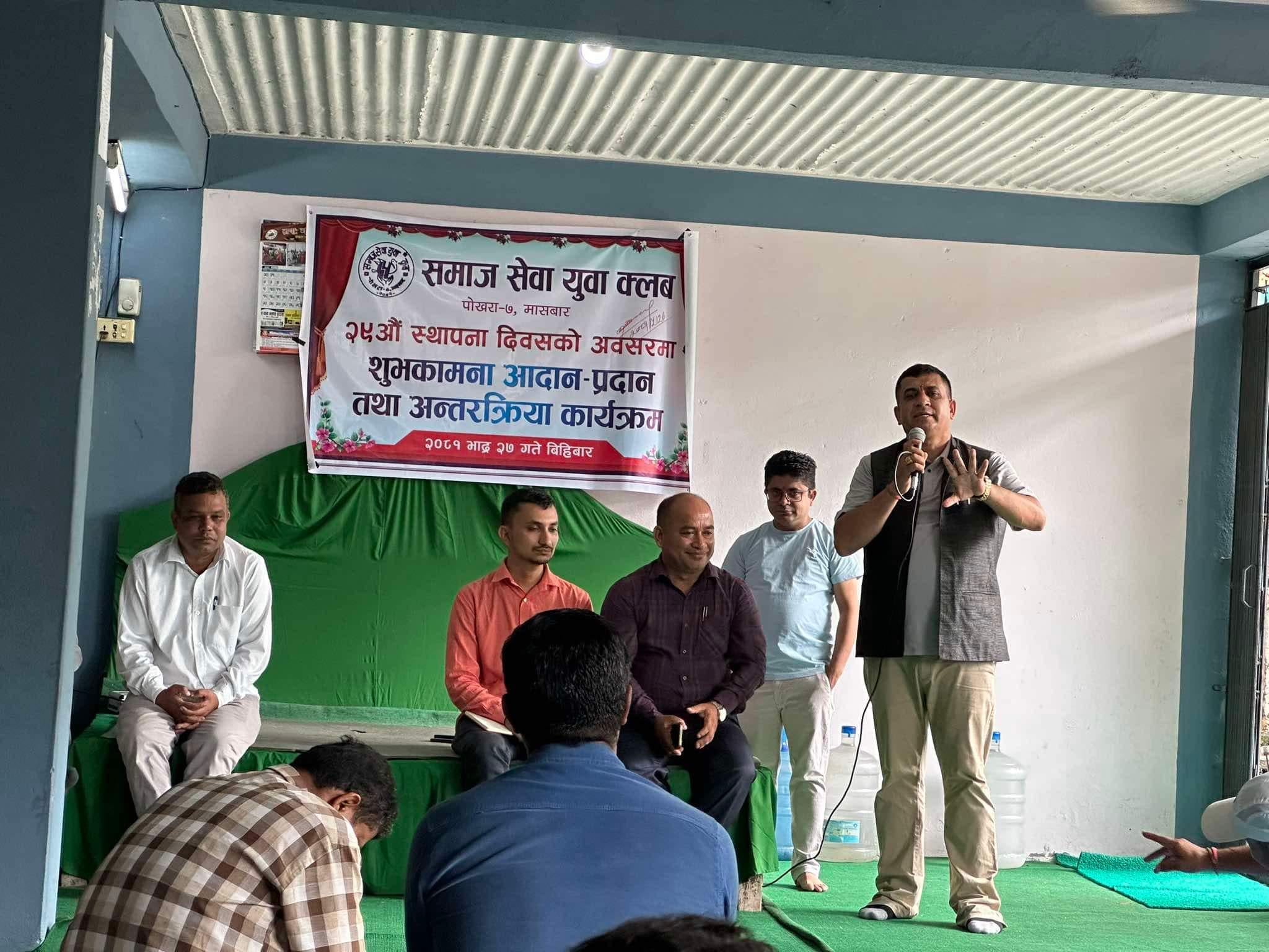 पोखरा ७ मासबारमा रहेको समाज सेवा युवा क्लबको २९ औं स्थापना दिवसको अवसरमा शुभकामना आदान प्रदान तथा अन्तक्र्रिया सम्पन्न भएको छ ।