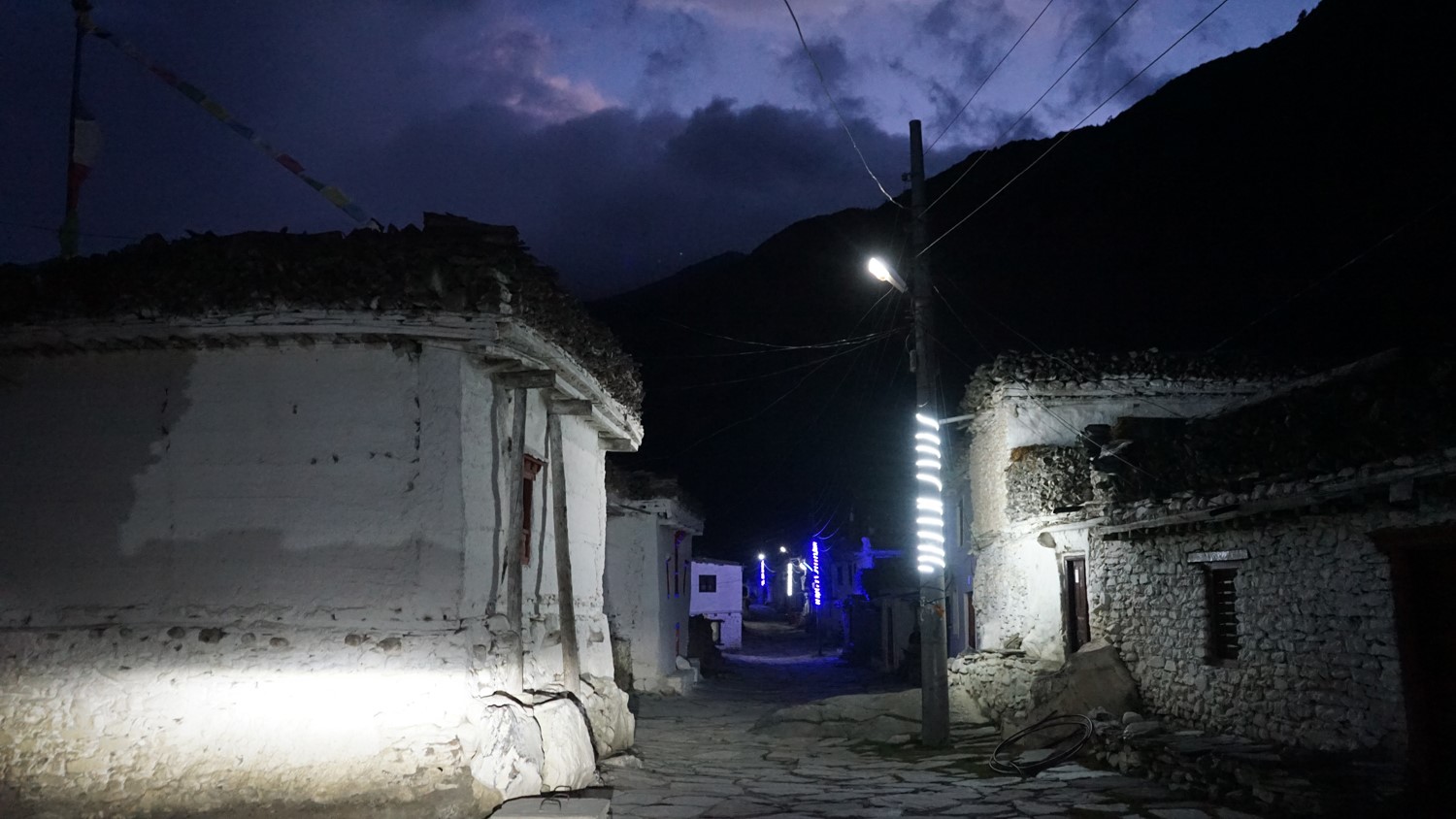 ठिनी, जोमसोम, एक्केभट्टी, स्याङ र मार्फामा बत्ती जडान गरेर रातको समयमा झिलीमिली बनाइएको छ । सडकबत्तीको महसुल गाउँपालिकाले ब्यहोर्ने निर्णय भएको छ । घरपझोङका बस्ती रातको समयमा झलमल्ल र मनमोहक देखिन्छन् ।
