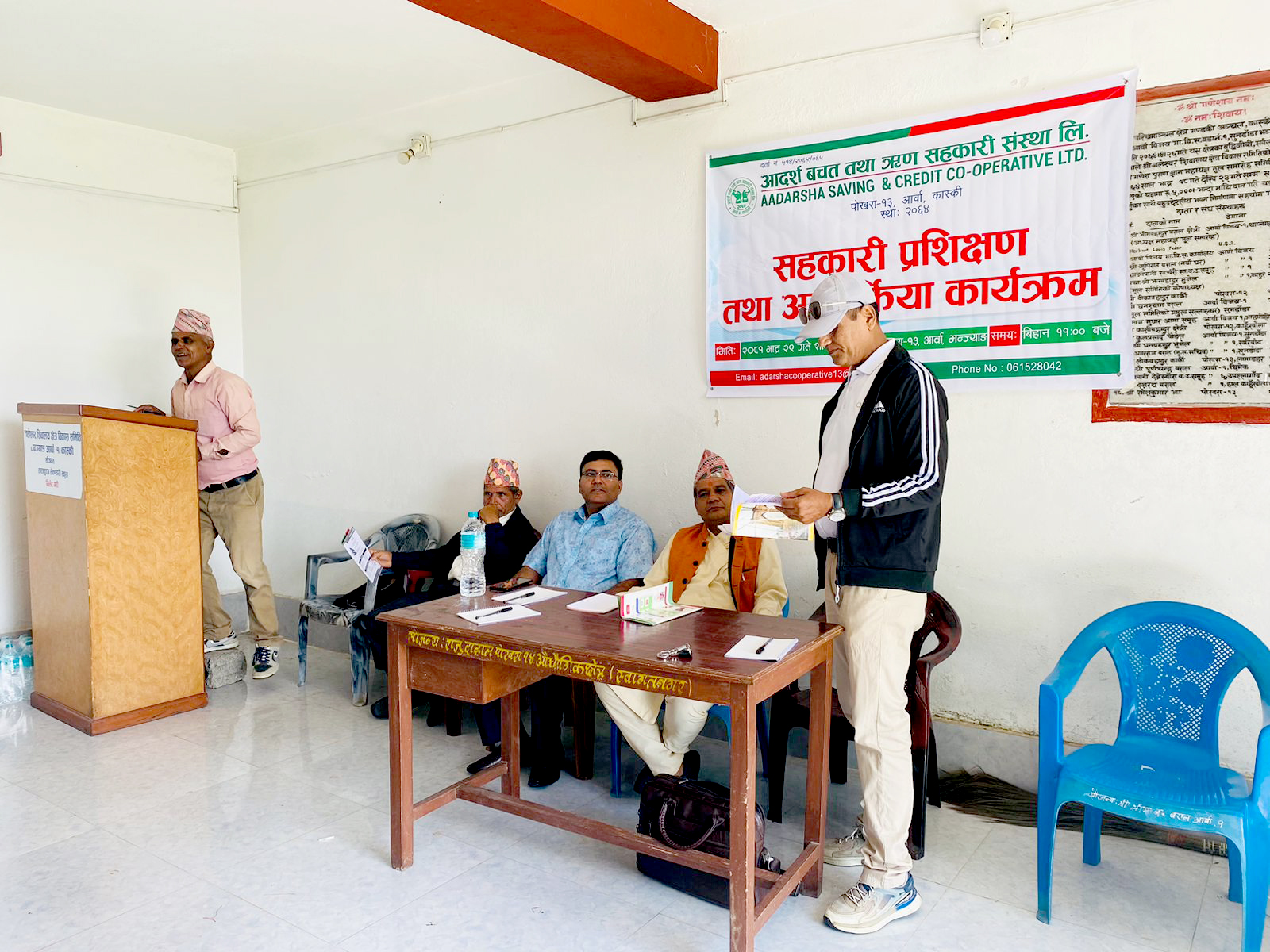 पोखरा महानगर पालिका सहकारी समिति सदस्य नारायणप्रसाद आचार्यले सहकारीका विविध विषयमा सहभागीलाई प्रशिक्षण दिएका थिए । आचार्यले सहकारीको विश्व इतिहास, नेपालका सहकारी र तिनको स्थापनादेखि वर्तमान अवस्थाबारे सहजीकरण गरेका थिए ।