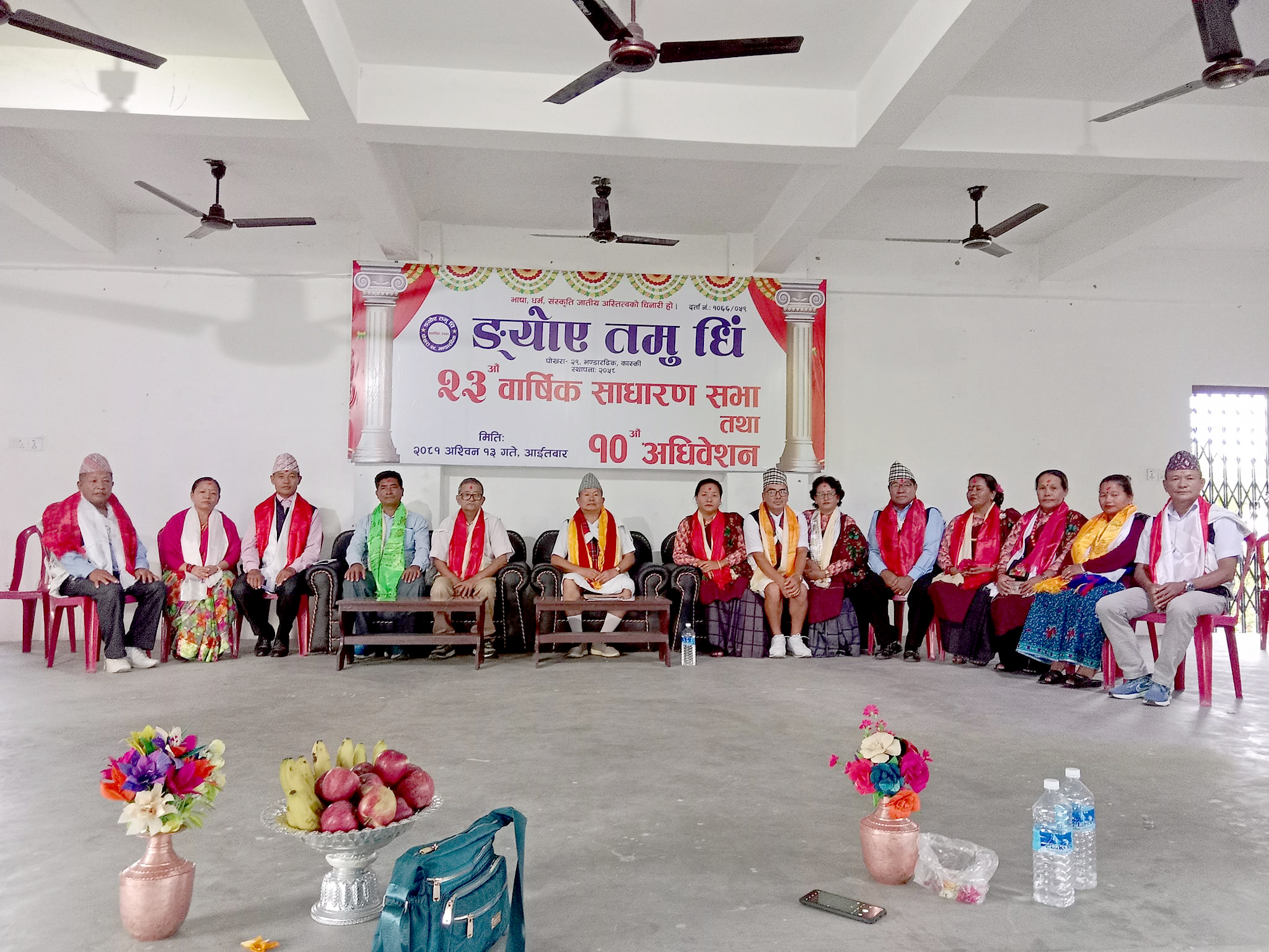 लेखनाथ । ङयोए तमु धीको अध्यक्षामा मेजर रामप्रसाद गुरुङले निरन्तरता पाएका छन् । शनिबार भएको संस्थाको २३ औं साधारण सभा तथा १० औं अधिवेशनबाट उपाध्यक्षमा सुवेदार मेघबहादुर गुरुङ, प्रथम महिला उपाध्यक्षमा काशीमाया गुरुङ, महासचिवमा राजु गुरुङ, उपमहासचिवमा तारादेवी गुरुङ र कोषाध्यक्षमा मनदेवी गुरुङ निर्वाचित भए ।