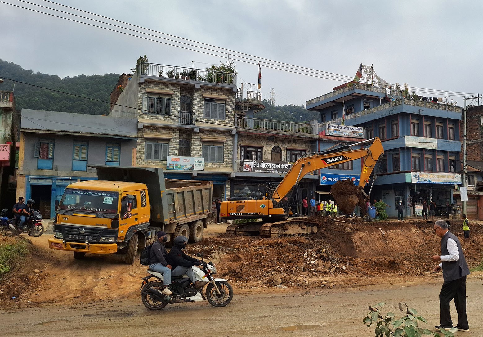 विवाद समाधानपछि दमौली बजारमा सडक विस्तारले गति लियो