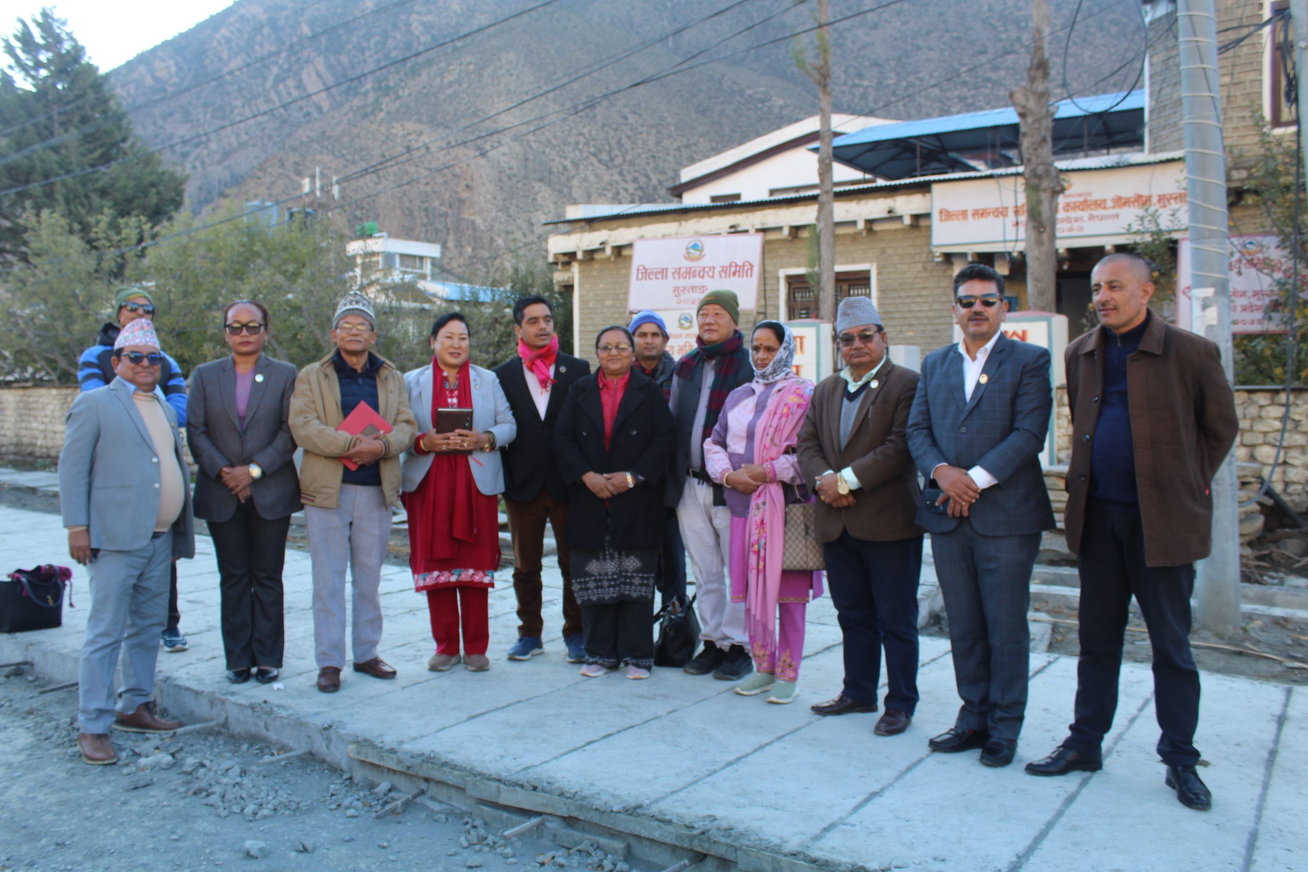 प्रमुख जिल्ला अधिकारी विष्णुप्रसाद भुसालले शान्त जिल्ला रहेको मुस्ताङमा भौतिक सुविधासंगै सुरक्षा चुनौती पनि थपिएको बताए । सडक दुर्घटना बढ्दै गएको, भौगोलिक र मौसमका कारण सीमा सुरक्षामा पनि चुनौती रहेको, एकैपटक उपल्लो मुस्ताङ जान थाल्दा लेकलागेर ज्यान जाने समस्या बढ्दै गएको उनको भनाई थियो । करिडोर अन्तर्गत पर्वतको मालढुंगादेखि कागवेनीसम्मको १ सय ५ किमी सडकमध्ये ६५ किमीमात्रै पीच रहेको, कागवेनी कोरला ९७ किमी सबै कच्ची सडक रहेको उनले बताए । १९ वटा पुल ठेक्का लागेकोमा ३ वटा पुल बाढीले बगाएको र २ वटा निर्माणाधीन रहेको उनले सुनाए । ‘भारतसंगको सीमा नाका त्रिवेणी र चीनसंगको सीमा कोरला नाका जोड्नसके मानसरोवर जाने छोटो यात्रा हुनेछ’ भुसालले भने, ‘तर सडक राम्रो बनाउनु पर्छ ।’ नाकामै पूर्वाधार बनाएर सबै कार्यालय संचालन गर्न सके राम्रो हुने उनले बताए ।