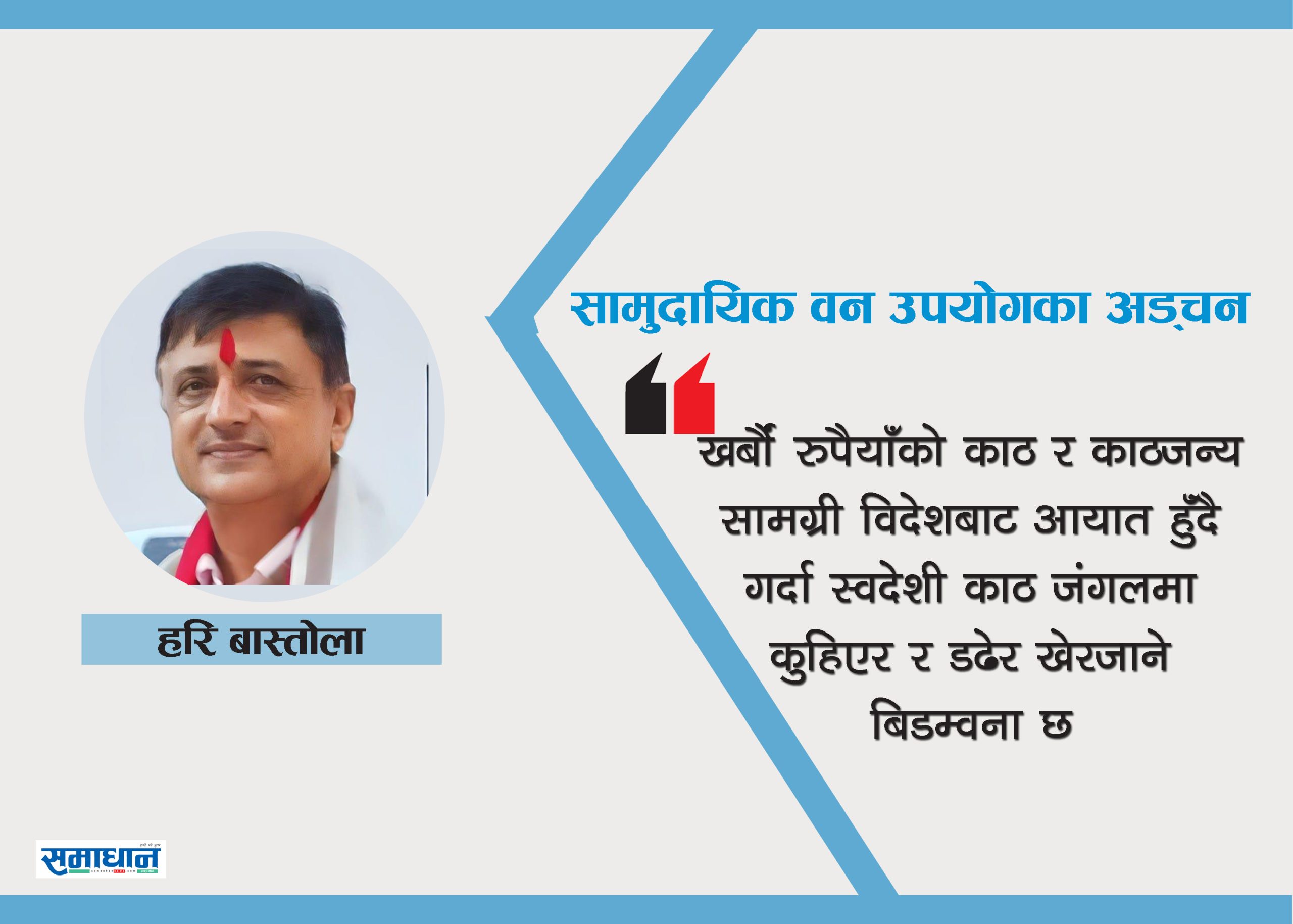 खर्बौं रुपैयाँको काठ र काठजन्य सामग्री विदेशबाट आयात हुँदै गर्दा स्वदेशी काठ जंगलमा कुहिएर र डढेर खेरजाने बिडम्वना छ