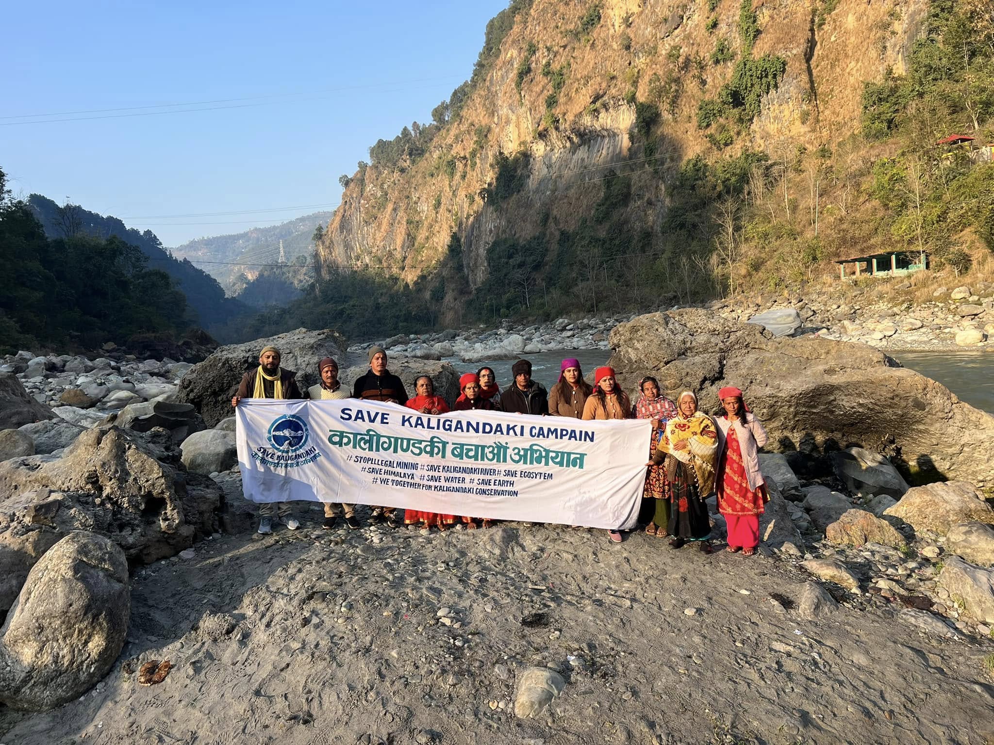 कालीगण्डकी बचाउन नदी किनारमै ब्यानर प्रदर्शन