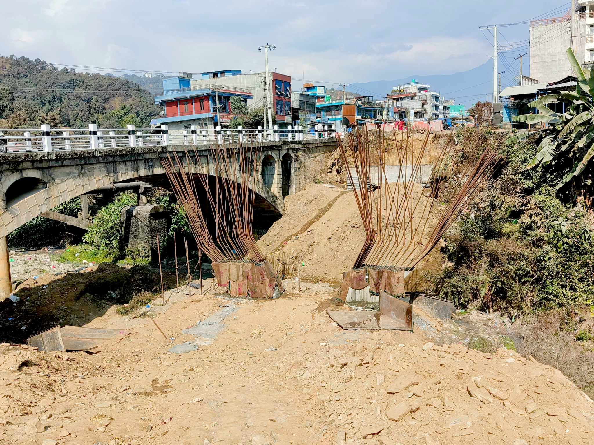 २०७५ सालमा पुल निर्माणको ठेक्का शान्ति आरोग्य जेभीलाई दिइएको थियो । ३० महीनाभित्र पुन निर्माण गर्ने गरी शान्ति आरोग्यसँग ठेक्का सम्झौता गरेको थियो । तर तीन पटक म्याद थपिदा पनि पुल बन्न सकेको छैन ।