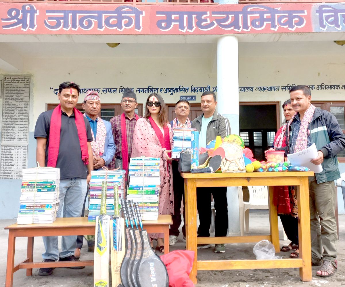 पोखरा । दृश्यम मिडिया प्रालिको दोस्रो वार्षिकोत्सवको अवसरमा जानकी मावि पोखरा १७ महतगौडालाई शैक्षिक एवम खेलकुद सामग्री वितरण गरेको छ । विद्यार्थीको पठनपाठनमा सहयोगी पुस्तिका टेनसेट लगायतका पुस्तक, फुटबल, भलिबल, क्रिकेट ब्याट र बल, टेलबटेनिस, टेनिसबल ब्याडमिन्टन, पोशासहित ६५ हजारका सामग्री वितरण गरिएको हो ।