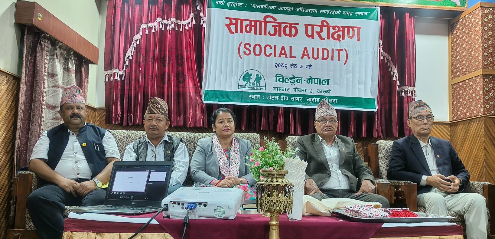 बाल अधिकार, शिक्षा, कृषि, वातावरण संरक्षणको क्षेत्रमा क्रियाशील संस्था श्रमिक बाल बालिकाहरुको लागि सामाजिक एकीकरण मञ्च (चिल्ड्रेन नेपाल)को बुधबार आर्थिक वर्ष २०८०/०८१ को सामाजिक लेखाजोखा कार्यक्रम भएको छ । संस्थाले गरेका गतिविधिको बारेमा सरोकारवालालाई जानकारी दिन तथा संस्थागत सुशासनका लागि कार्यक्रम गरेको संस्थाका अध्यक्ष शान्त पौडेलले जानकारी दिए ।