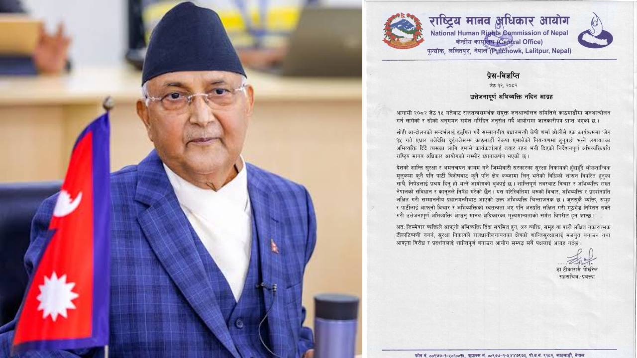 आयोगको विज्ञप्तिमा भनिएको छ, “शान्तिपूर्ण तवरले विचार र अभिव्यक्ति प्रकट गर्ने अधिकार नेपालको संविधान तथा कानुनले प्रत्याभूत गरेको छ। तर, अरूको विचार, अभिव्यक्ति र प्रदर्शनप्रति लक्षित गरेर प्रधानमन्त्रीजस्तो जिम्मेवार व्यक्तिबाट उत्तेजनात्मक अभिव्यक्ति आउनु चिन्ताजनक छ।”