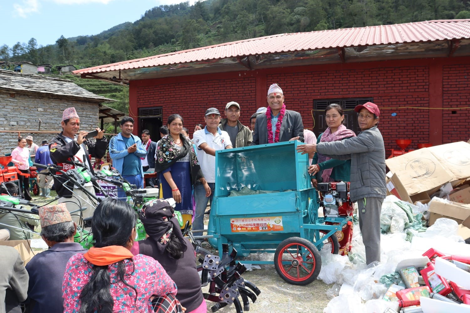 थप ८२ वटा जौ, उवा र कोदो तथा घाँस काट्ने ब्रस कटर, एक सेट कुकीज उत्पादन गर्ने मेसिन, १६६ थान त्रिपाल, १०० वटा ३०० किलोग्राम तौल क्षमताको मेटल बिन दोस्रो चरणमा वितरण गरिने उनले बताए ।