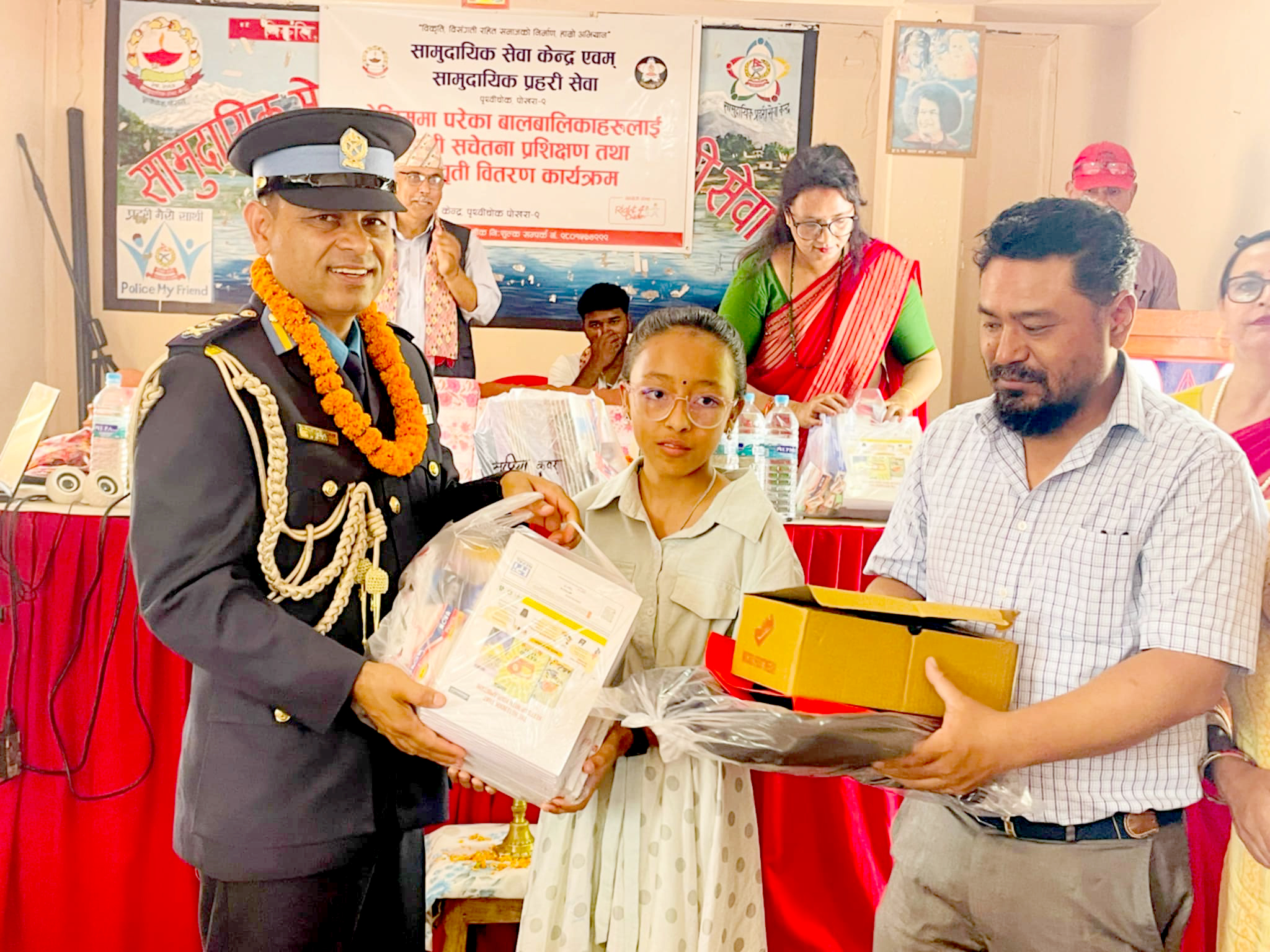 कार्यक्रममा जिल्ला प्रहरी कार्यालय कास्कीका प्रमुख प्रहरी उपरीक्षक श्यामबाबु ओलिया र संस्थाका अध्यक्ष श्रेष्ठले विद्यार्थीलाई लत्ता कपडा, झोला, शैक्षिक सामग्री प्रदान गरे । अध्यक्ष श्रेष्ठले कालिका मावि, नवप्रभात मावि नयाँ बजार, सहारा बाल आधारभूत विद्यालय, राष्ट्रिय मावि टुँडिखेल, सिद्ध मावि फलेपाटन, भद्रकाली माविका ती विद्यार्थीलाई छात्रवृत्तिको व्यवस्था गरेको जानकारी दिए ।