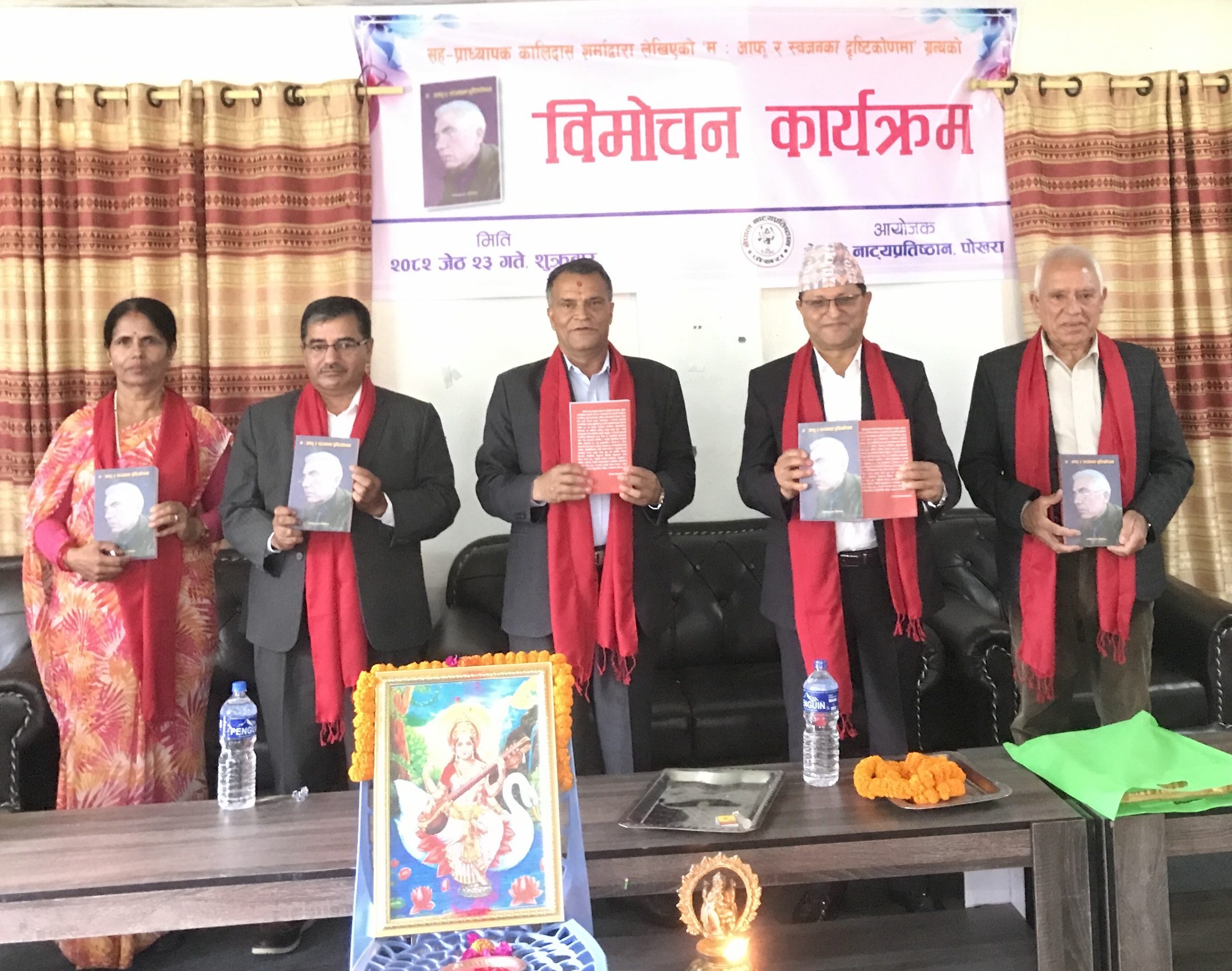 त्रिभुवन विश्वविद्यालयका अवकाशप्राप्त उपप्राध्यापक कालिदास शर्मा तिमिल्सिनाको सिर्जना ‘मः आफू र स्वजनका दृष्टिकोणमा’ नामक ग्रन्थको विमोचन गरिएको छ । नेपाल नाट्यप्रतिष्ठान, पोखराले शुक्रबार पोखरामा आयोजित कार्यक्रममा राष्ट्रिय सभाका पूर्वअध्यक्ष गणेशप्रसाद तिमिल्सिनाले उक्त ग्रन्थको विमोचन गरे ।