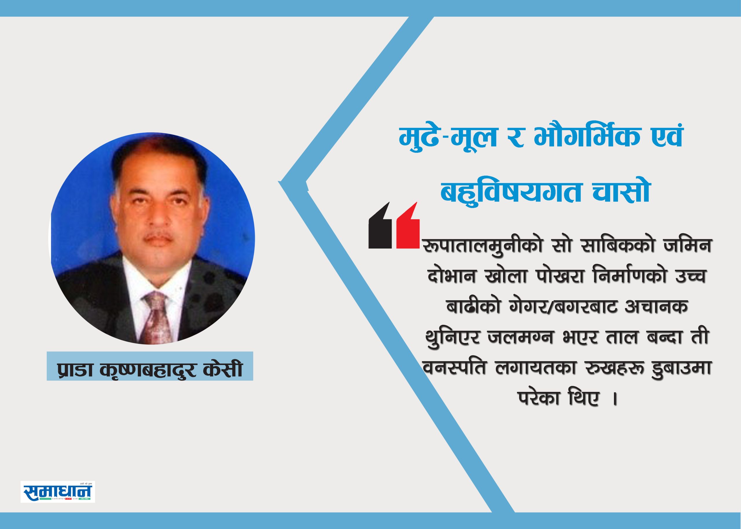 रुपातालमुनीको सो साबिकको जमिन दोभान खोला पोखरा निर्माणको उच्च बाढीको गेगर/बगरबाट अचानक थुनिएर जलमग्न भएर ताल बन्दा ती वनस्पति लगायतका रुखहरू डुबाउमा परेका थिए ।