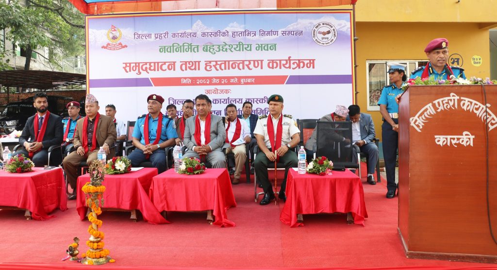 जिल्ला प्रहरी कार्यालय कास्की परिसरमा नवनिर्मित दुईतले बहुउद्देश्यीय भवन उद्घाटन तथा हस्तान्तरण भएको छ । कार्यक्रममा गण्डकी प्रदेश प्रहरी कार्यालय पोखराका प्रमुख (डिआइजी) दिनेशकुमार आचार्य प्रमुख अतिथि थिए ।