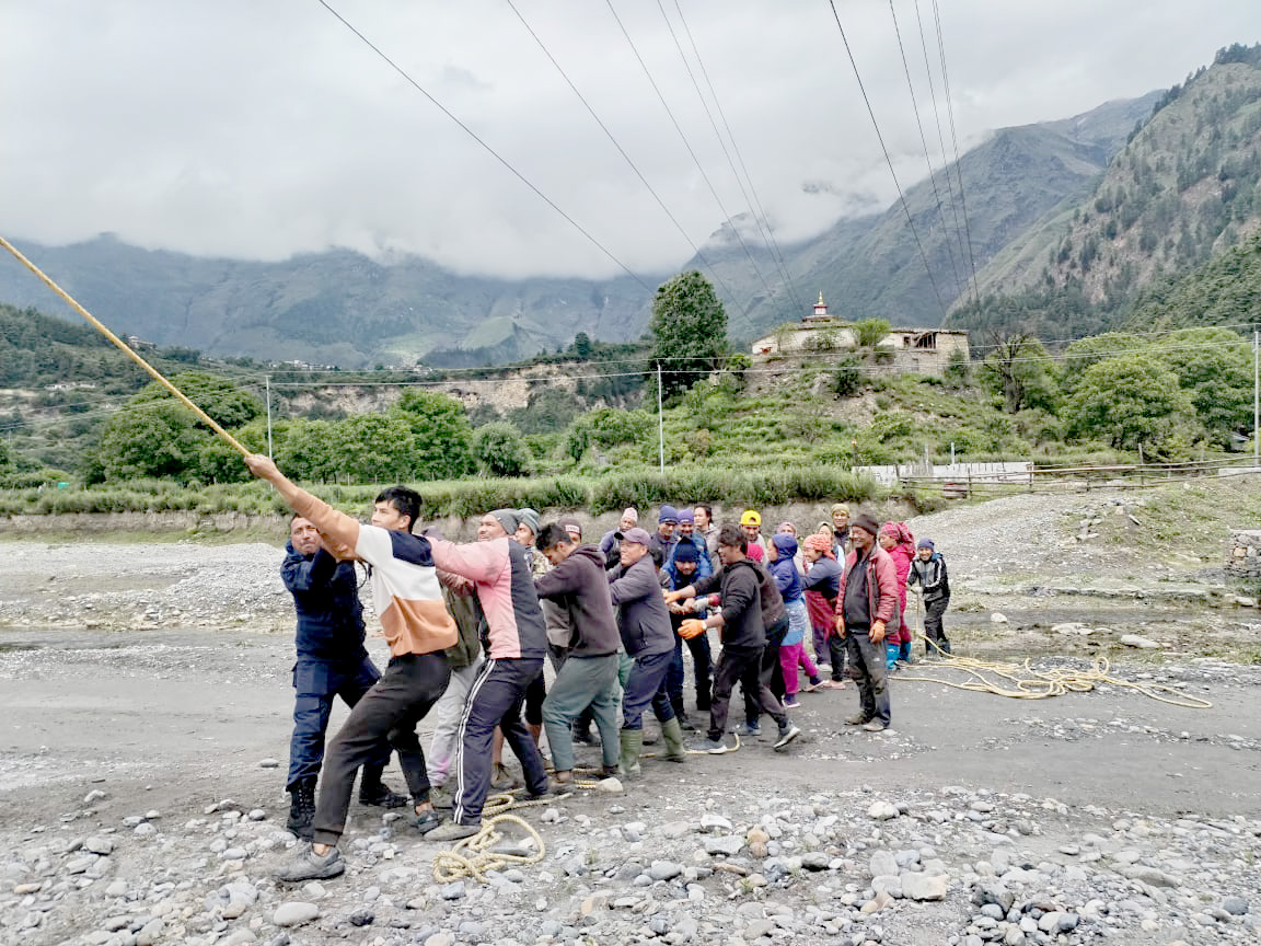 करिब ९० जना स्थानीयको समूहले दुई दिनसम्म स्वतःस्फूर्त रुपमा पुलको लाट्ठो तान्ने काममा श्रमदान गरेको हो । मुस्ताङको थासाङ २ को कालिगण्डकी नदी वारिपारी कोवाङ—सौरु जोड्ने ५ सय ७० मिटर लामो सस्पेन्सन पुल निर्माणका लागि सामूहिक रुपमा स्वेच्छिक श्रमदान गरेको सौरु गाउँका स्थानीय सोजन हिराचनले जानकारी दिए ।