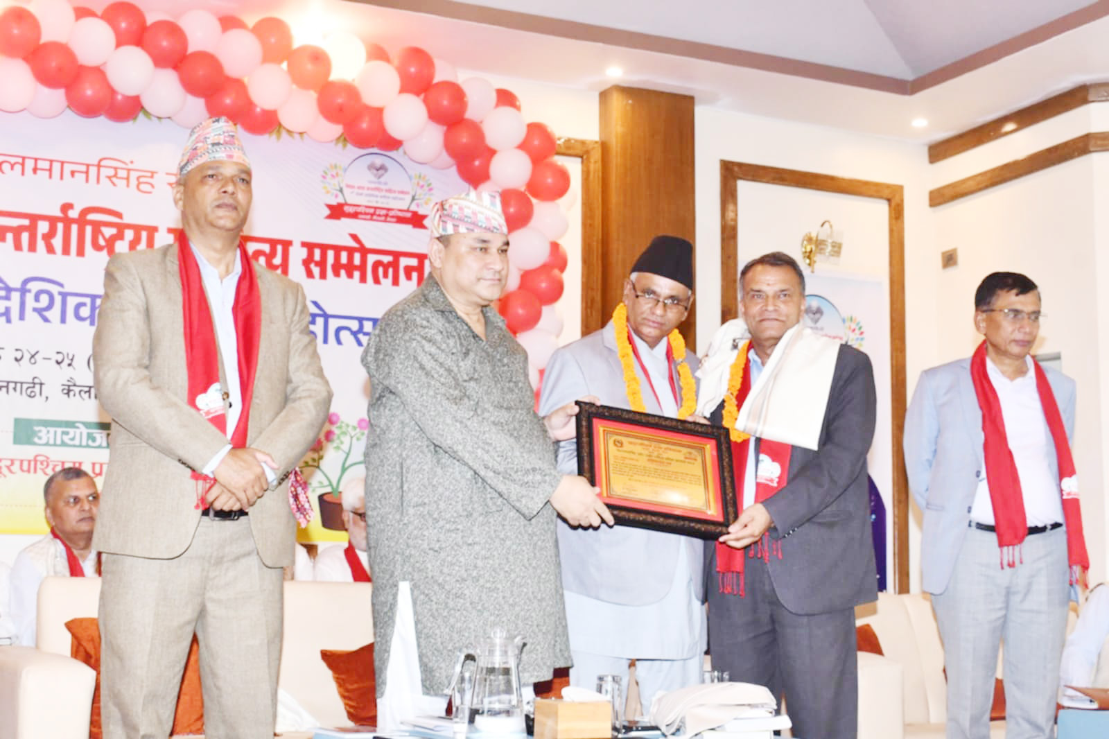 सुदूर पश्चिम प्रज्ञा प्रतिष्ठानले पोखरेली स्रष्टा माधव वियोगी र प्राडा रामचन्द्र पोखरेललाई धनगढीमा आइतबार सम्मान गरेको छ । अन्तर्राष्ट्रिय साहित्य सम्मेलनमा उनीहरूलाई पहलमानसिंह स्वाँर राष्ट्रिय सम्मान २०८२ प्रदान गरिएको हो ।