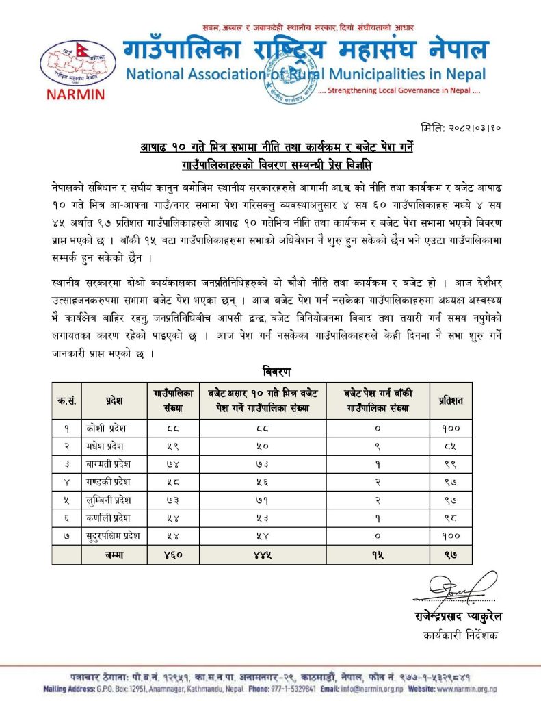 ९७ प्रतिशत गाउँपालिकाले समयमै बजेट ल्याए, १५ वटा चुके