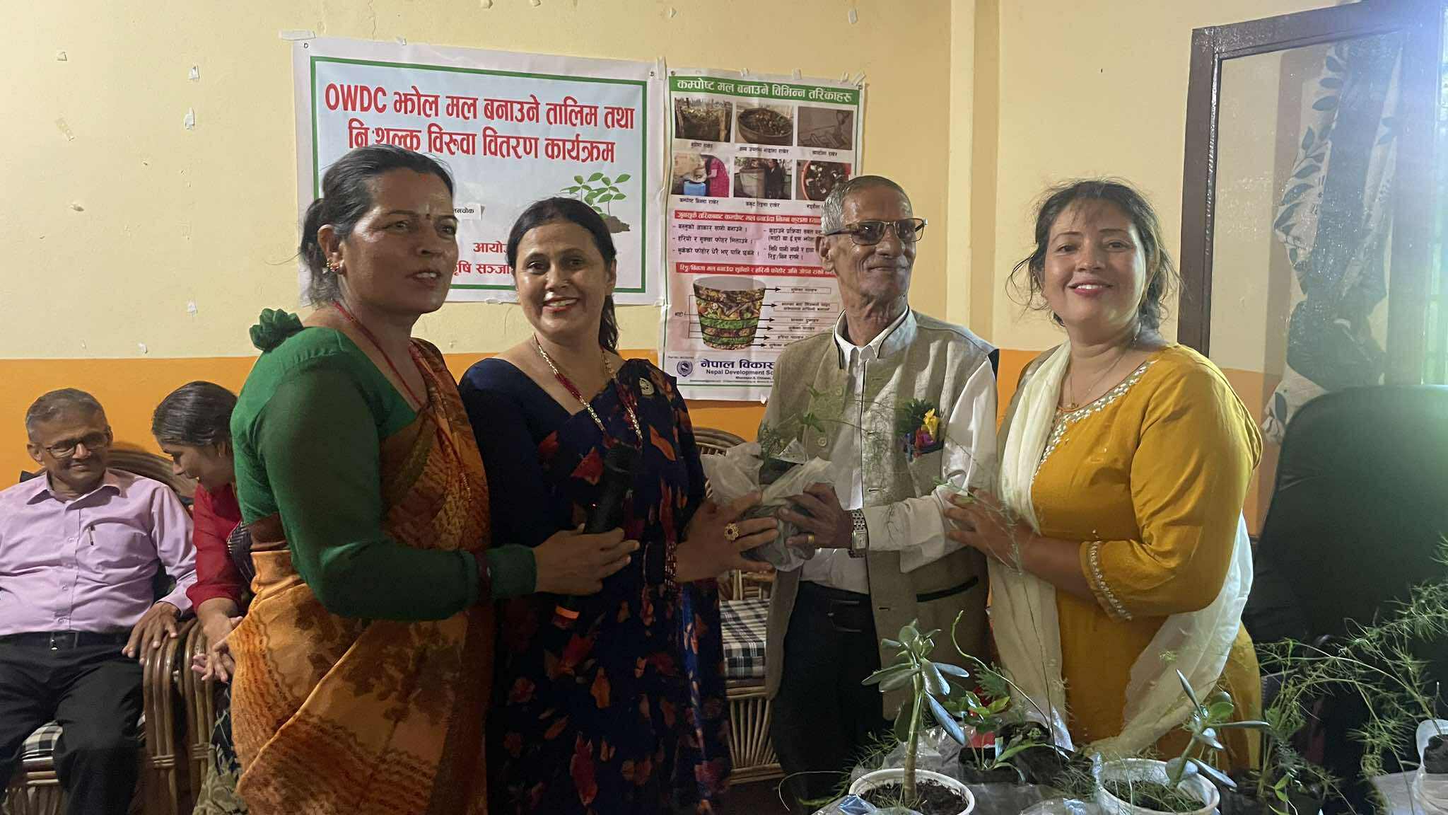 तालिममा कौशि खेति क्वीनका उपविजेता तथा प्रशिक्षक कान्ति पौडेल अधिकारीले झोलमल बनाउने तरिका सिकाएकी थिइन् । तालिममा ३० जना सहभागि थिए । कार्यक्रममा धृपि, कफि र कुरिलो गरि विभिन्न प्रजातिका ३ सय बिरुवा वितरण गरिएको सञ्जालकी अध्यक्ष विन्द्रा धरेल जानकारी दिइन् ।