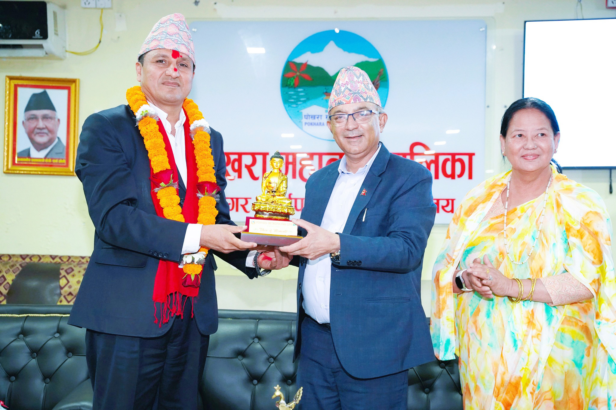 पोखरा महानगरपालिकाले तत्कालीन प्रमुख प्रशासकीय अधिकृत शिवराज चौलागाईलाई बिदाइ गर्दा करुवा र बुद्धका मूर्ति मायाको चिनो दियो । पोखराबाट सेवा निवृत्त भएका अधिकृत चौलागाई पोखरा महानगरपालिकाका प्रमुख धनराज आचार्य, उपप्रमुख मन्जुदेवी गुरुङ, दलका नेताहरू दिवसमान प्रधानांग र राधिकाकुमारी शाही योगी, प्रवक्ता मोतीलाल तिम्सिना, महाशाखा तथा शाखा प्रमुखहरू, जनप्रतिनिधि र कर्मचारीले संयुक्त रूपमा बिदाइ गरेका थिए ।