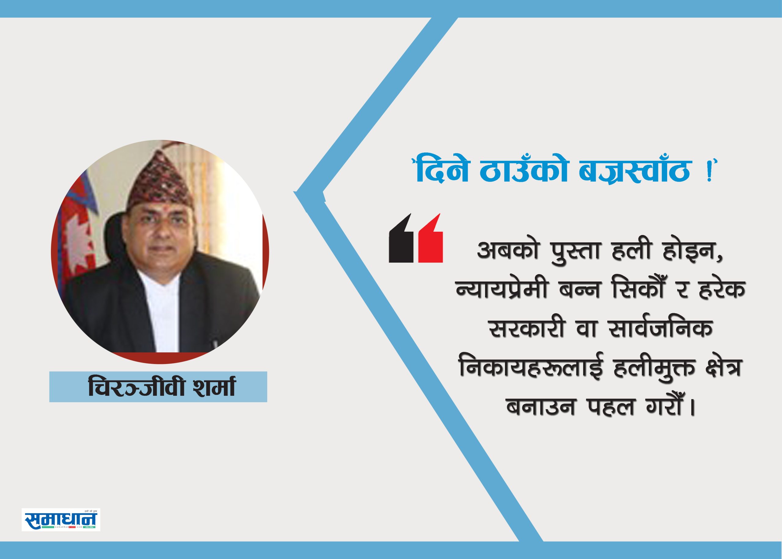 म दावाका साथ भन्छु, न्यायलाई अन्यायमा बेच्नेहरू, न्यायको उपेक्षा गर्नेहरू, न्यायिक मर्यादा उल्लङ्घन गर्नेहरू माथि बेलिविस्तार गरिएअनुसारका बज्रस्वाँठहरू नै हुन्। लफङ्गा, उरन्ठेउला, सधैँभरि लोक–रिझाइ होइन कि मालिक–रिझाइमा लिप्त रहेका, ओहदा वा जिम्मेवारीको मर्यादा भुलेका बज्रस्वाँठहरूले संस्थालाई रचनात्मकता वा सिर्जनात्मकतातर्फ कहिल्यै दिशानिर्देश गर्न सक्दैनन्।