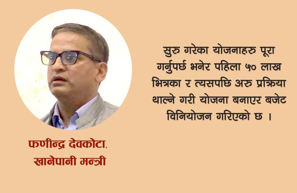 गण्डकीसरकारले पहिलो चरणमा ५० लाखमा पूरा हुने योजना छनोट गरी बजेट विनियोजन गरेको मन्त्री देवकोटा बताउँछन् । ‘प्रदेशले सुरु गरेका योजना पूरा गर्नुपर्छ भनेर पहिला ५० लाख भित्रका र त्यसपछि अरु प्रक्रिया थाल्ने गरी योजना बनाएर बजेट विनियोजन गरिएको छ,’ उनले थपे ।