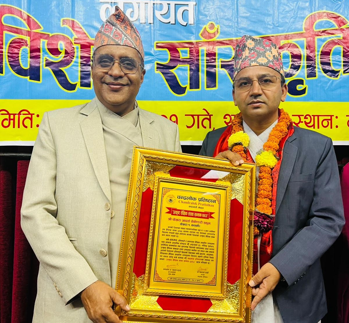 नेपालको शैक्षिक क्षेत्रमै गुणस्तरीय, प्रविधिमैत्री, प्रतिस्पर्धी, क्षमतावान शैक्षिक जनशक्ति उत्पादनमा उल्लेख्य भूमिका वहन गरेको भन्दै उक्त सम्मानबाट सम्मानित गरिएको हो । चन्द्रलोक प्रतिष्ठानद्वारा आयोजित उक्त सम्मानको कार्यक्रममा प्रमुख अतिथि पूर्व प्रधानमन्त्री डा. बाबुराम भट्टराई र प्रतिष्ठानका अध्यक्ष सीताराम कार्कीले विद्यालयका प्राचार्य फणिन्द्रप्रसाद अधिकारी र विद्यालय व्यवस्थापन समितिका अध्यक्ष कमलराज सापकोटालाई दोसल्ला र पदक सहित सम्मान गरे।