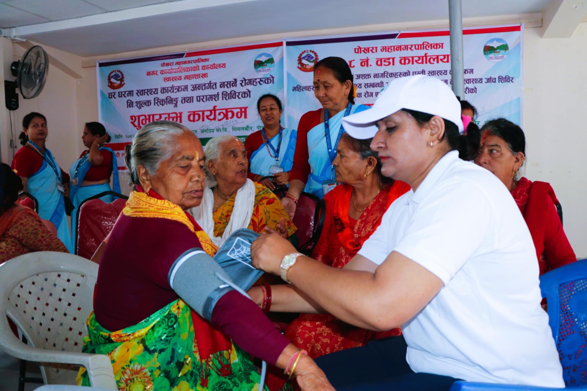 पोखरा महानगरपालिकाले ‘घरघरमा स्वास्थ्य कार्यक्रम’अन्तर्गत ११ हजार ८६२ जनालाई नसर्ने रोगको निःशुल्क परीक्षण तथा परामर्श सेवा प्रवाह गरेको छ ।