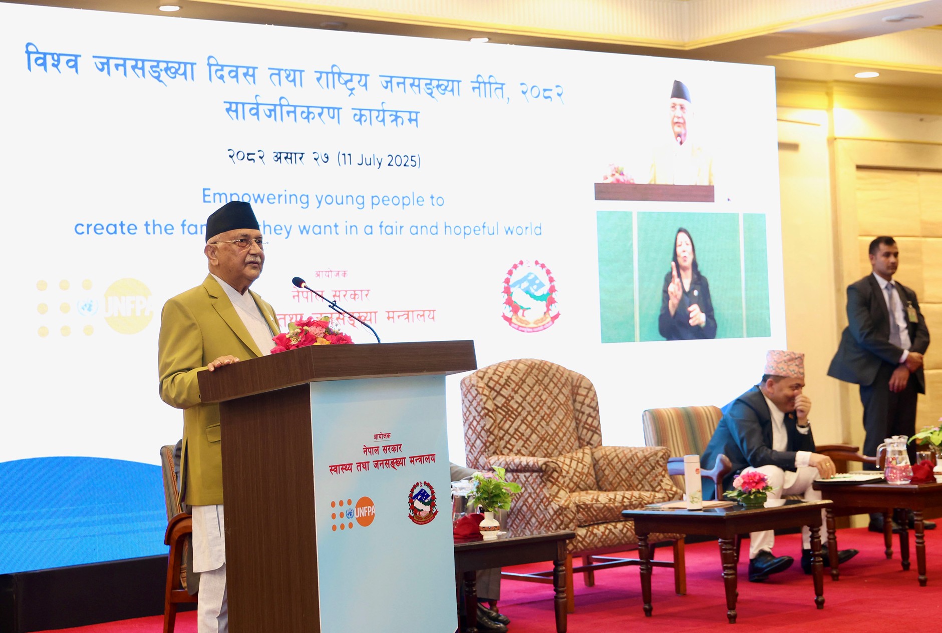 प्रधानमन्त्री केपी शर्मा ओलीले विकास र समृद्धिका लागि जनसंख्या सन्तुलन आवश्यक रहेको भन्दै युवाहरूलाई समयमै विवाह गरेर सन्तान जन्माउन आग्रह गरेका थिए ।