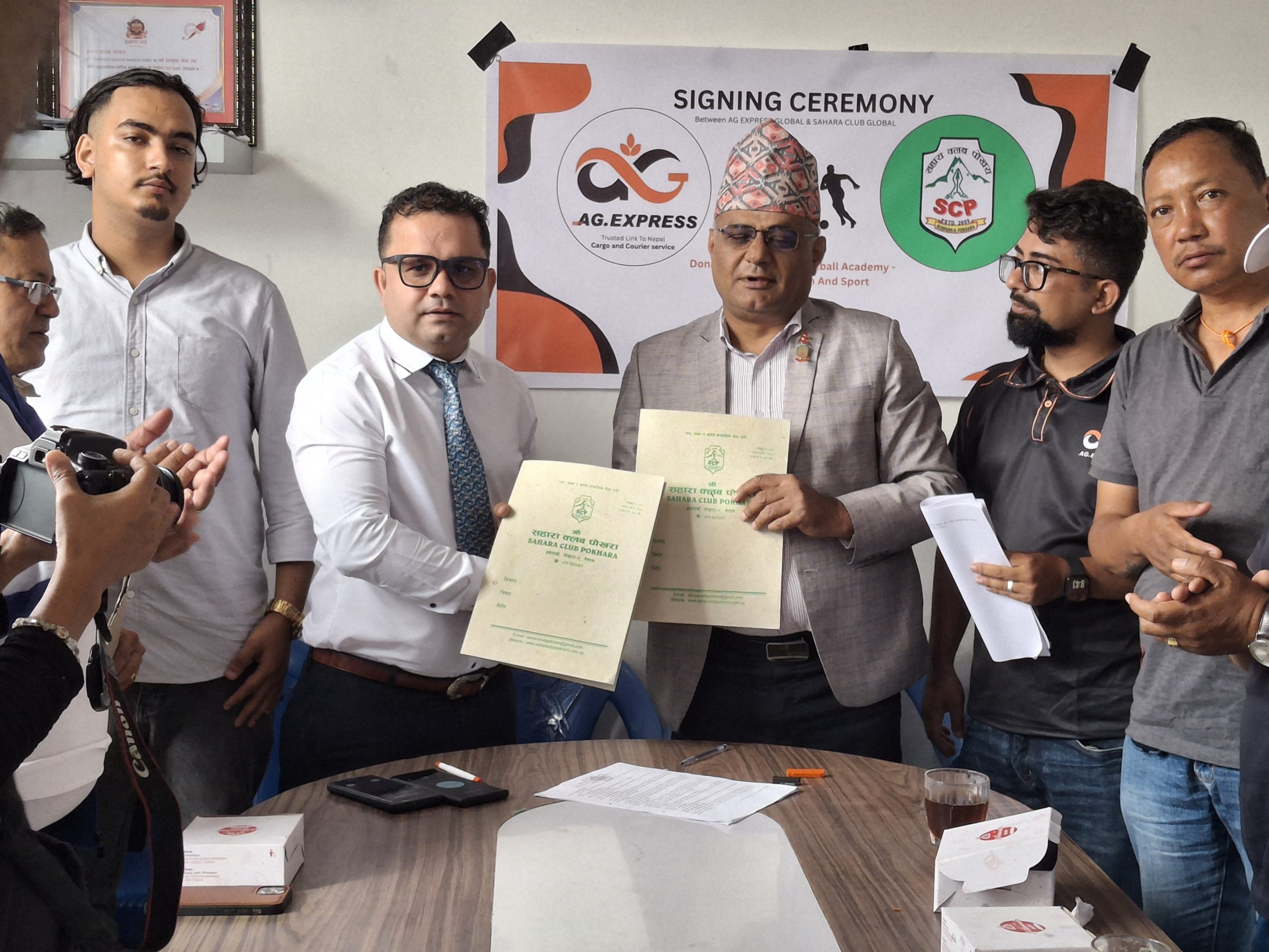 सम्झौतामा सहारा क्लबका सिनियर उपाध्यक्ष एवं एकेडेमी संयोजक पूर्णबहादुर गुरुङ, सहारा हङकङका संस्थापक अध्यक्ष दीपक गुरुङ र एजी एक्सप्रेसका पोखरा प्रतिनिधि रजत आचार्यले साक्षीका रूपमा हस्ताक्षर गरेका थिए ।